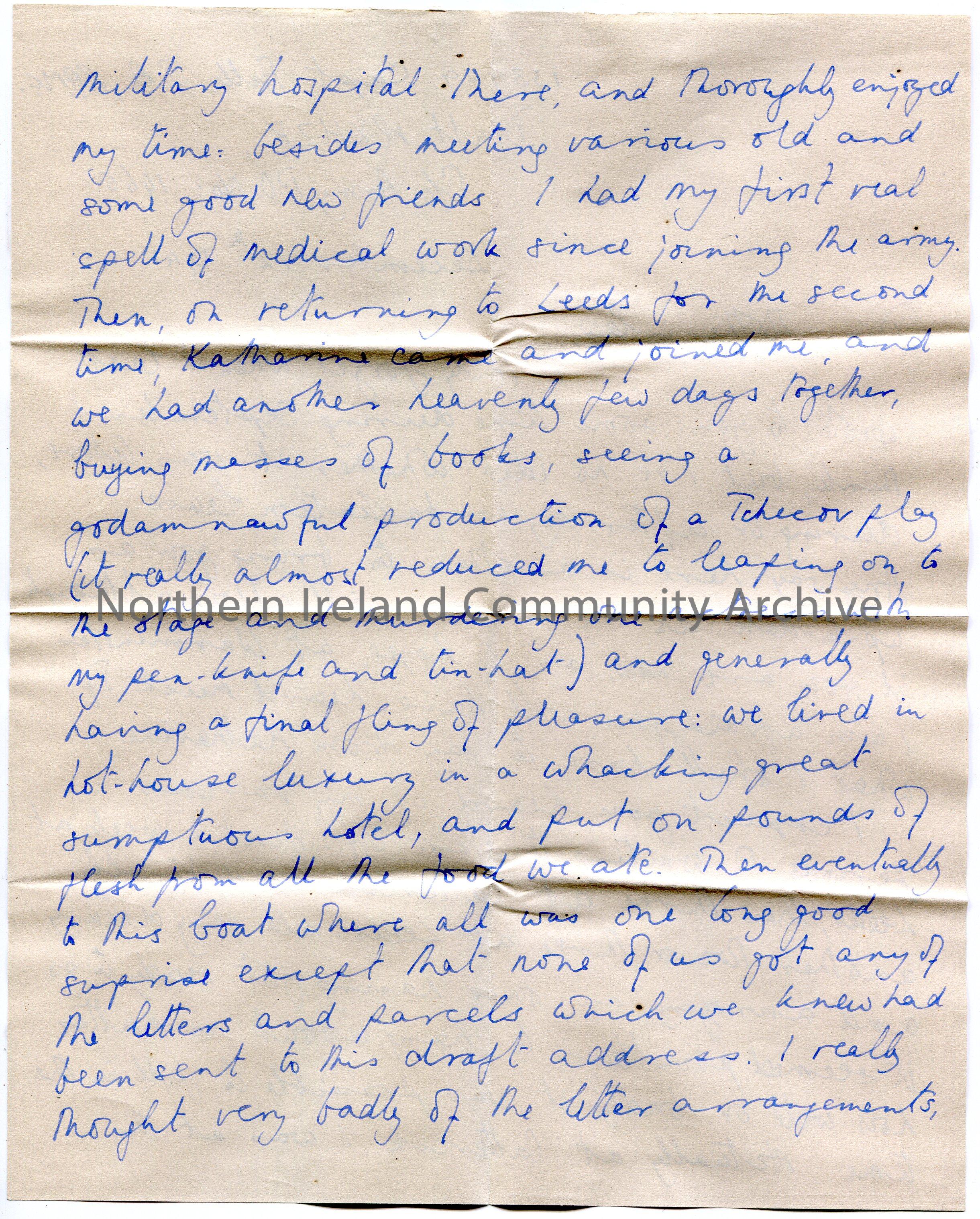 Page 1 of 2 of handwritten letter to ‘Dear Mother in law’ [Mrs R K Hezlet]. Writes of his medical training in Leeds and Catterick. Reminises of his ti… – scan009b