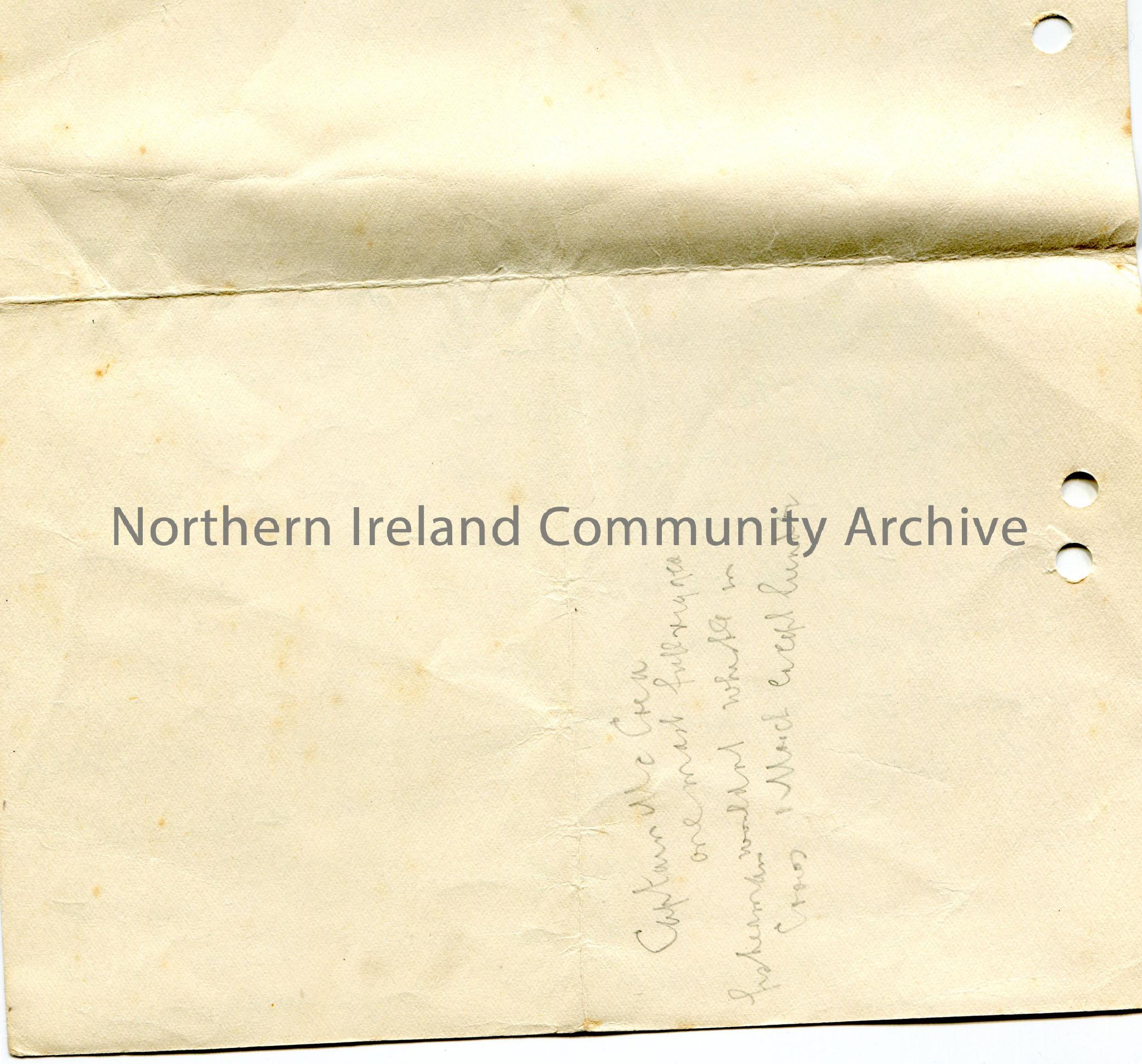 Page 1 of 2 of handwritten letter to Sam Henry from Patrick Conway. Addressed from Altinure Park, Co. Derry. Dated 27th February, 1938. Congratulates Sam on the success of his broadcast re Shane. States that the BBC should be praised for the broadcasts as they are saving the memory and deeds of people of the past from being lost forever. Hopes Sam's talk will be on the Antiquities and pre-historic Remains of Co.Derry. Rough notes in pencil on back of first page.