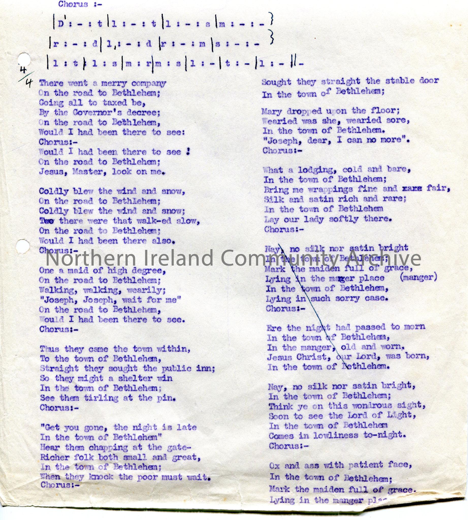Page 1 of 2 of typed tonic sol-fa notation and words to song titled, ‘No. 59 – On the Road to Bethlehem’. – scan269b