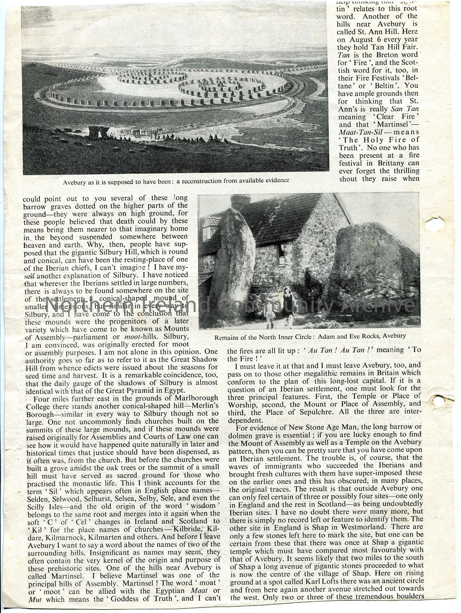 Page 1 of 2. Page cut from a form of publication (double sided) featuring an article by J. Foster Forbes titled, 'Monuments of the Stone Age'.