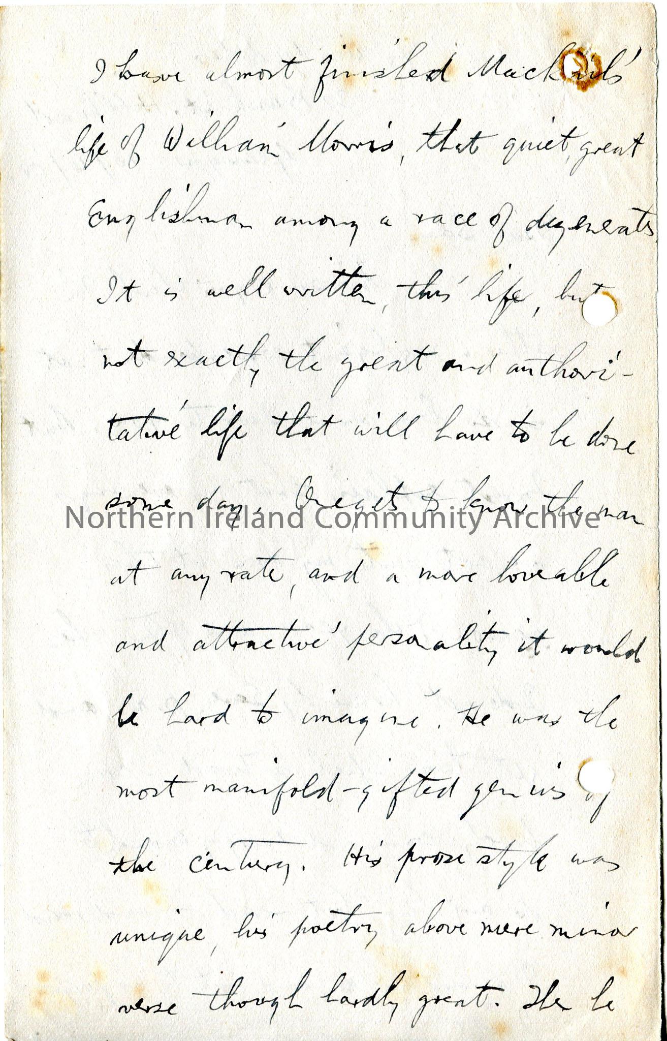 Page 1 of 20 page handwritten letter, on both sides of paper - ends abruptly with no signature - ? last page(s) missing. Discusses his working hours, books he is reading and authors he admires, different types of religion and mysticism, mentions himself as a 'second hand war correspondent' - talks of himself in the second person and his literary aspirations