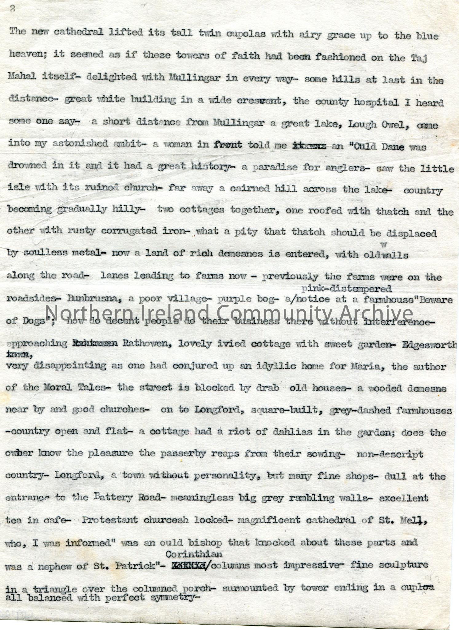 Page 1 of 3. Typed document re bus journey through Ireland. “Article accepted or pending” written in pencil on back of last page.