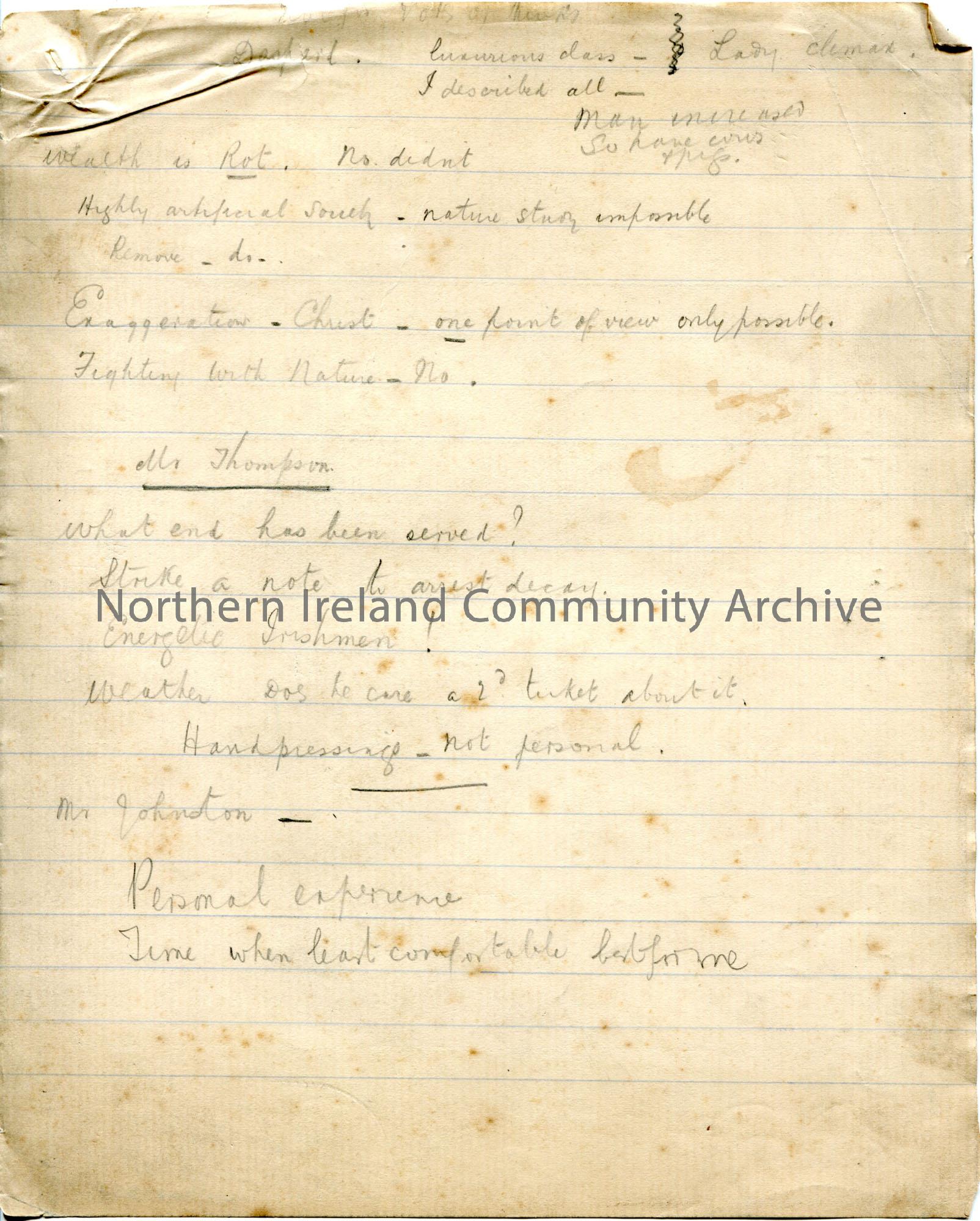 Page 1 of 39. Handwritten essay by Sam Henry titled, ‘The Cult of Comfort’. Title is scored out. Dated Omagh, December 1905. Religious, philosophical …