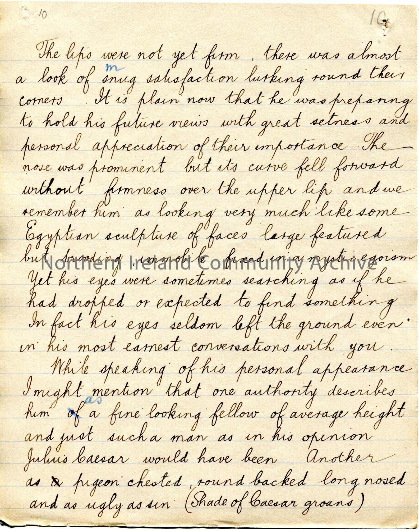 Page 10 of 38. Handwritten essay by Sam Henry titled, ‘The Hermit of Walden’. Philosophical essay re Henry David Thoreau. Sam presents this essay to t…