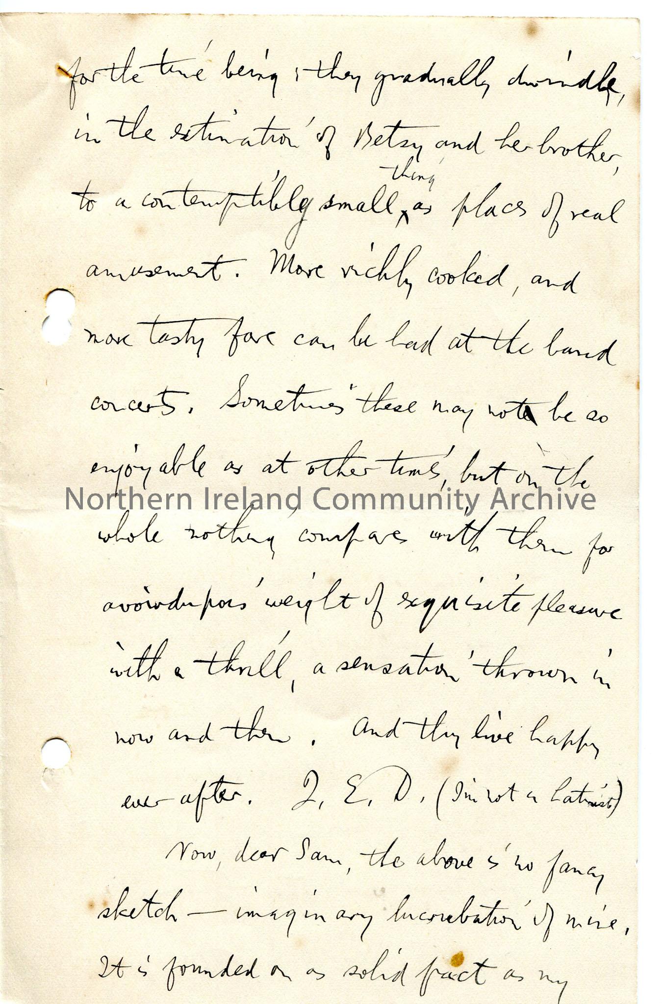 Page 12 of 24 page handwritten letter, on both sides of paper – author appears to have left Coleraine and now live in Glasgow. Mentions Irish Society …
