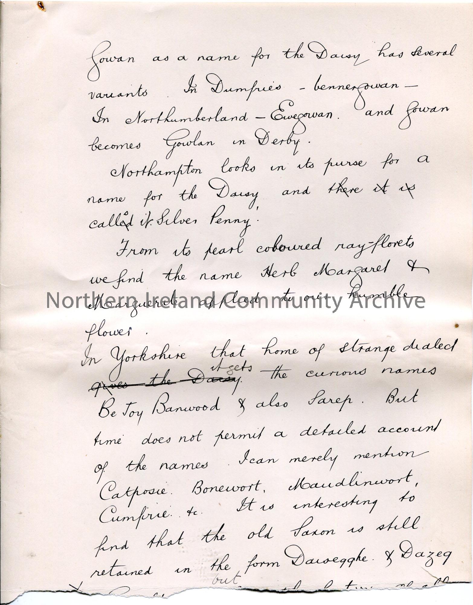 Page 12 of 33. Handwritten essay by Sam Henry titled, ‘The Daisy’. Re the flower. Pages not in order.