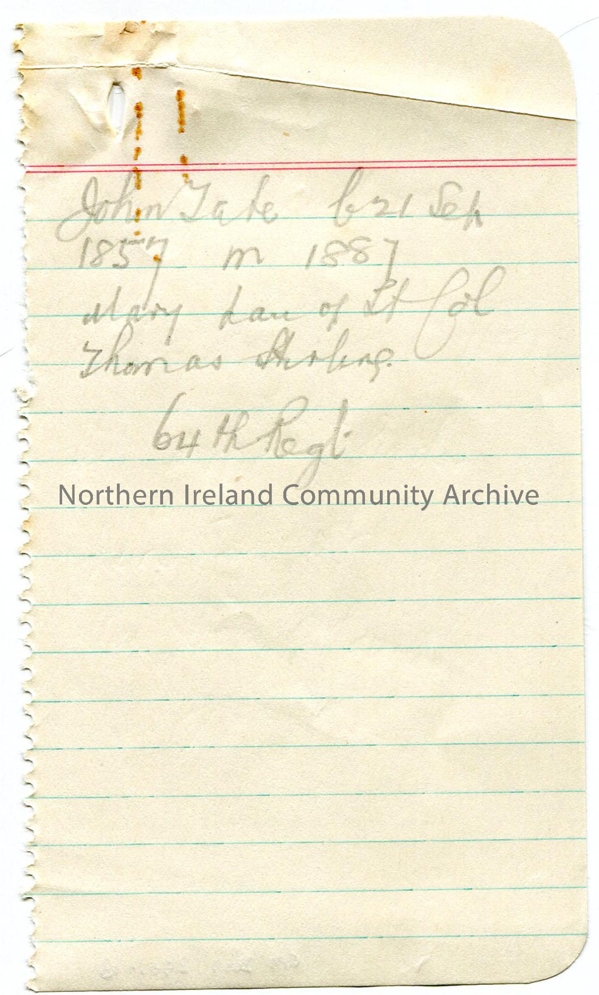 Page 13 of 13. Rough notes on lined paper which appear to be from a notebook. Re Sam’s research into the Blair family name.