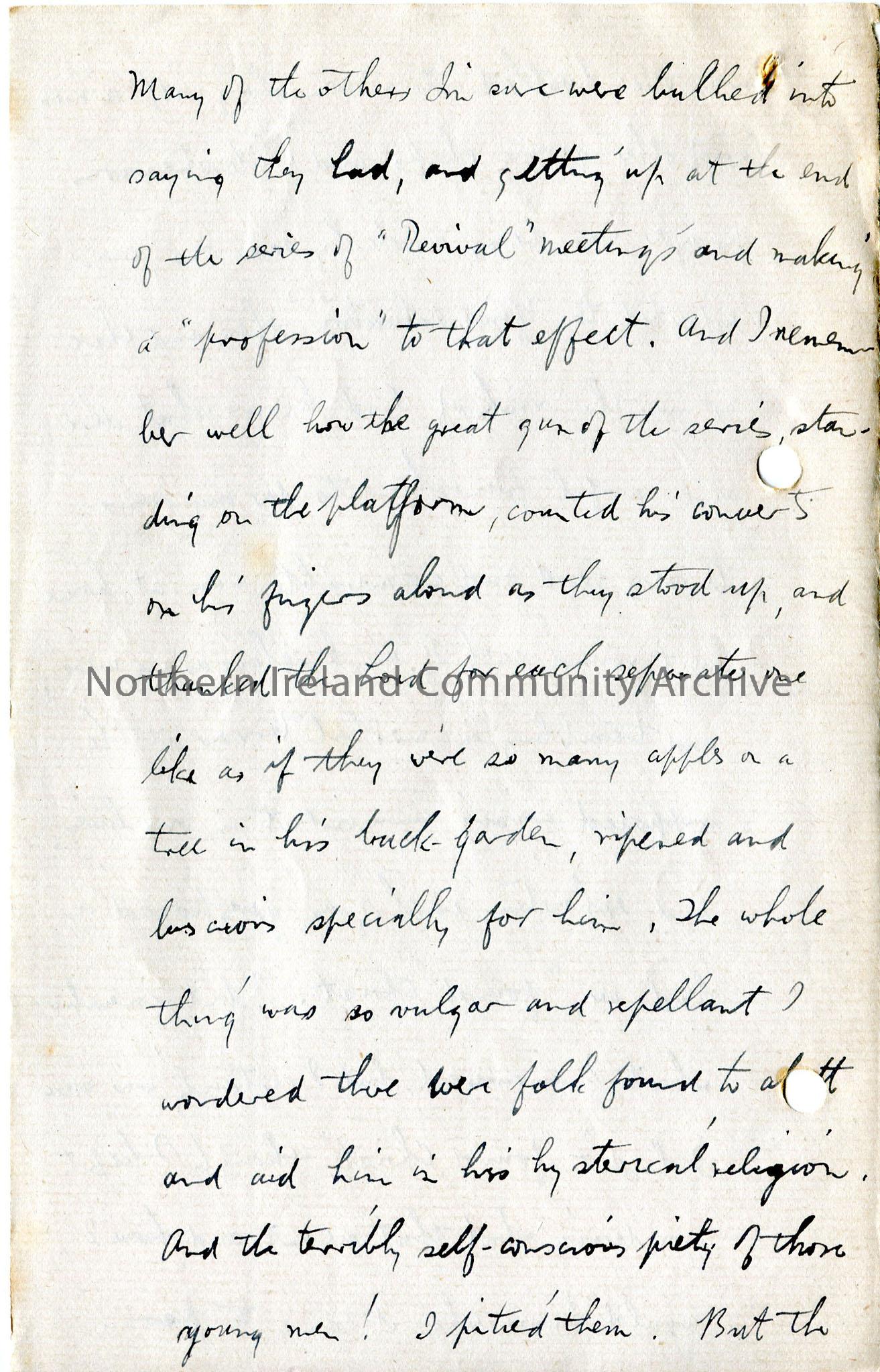 Page 14 of 20 page handwritten letter, on both sides of paper - ends abruptly with no signature - ? last page(s) missing. Discusses his working hours, books he is reading and authors he admires, different types of religion and mysticism, mentions himself as a 'second hand war correspondent' - talks of himself in the second person and his literary aspirations