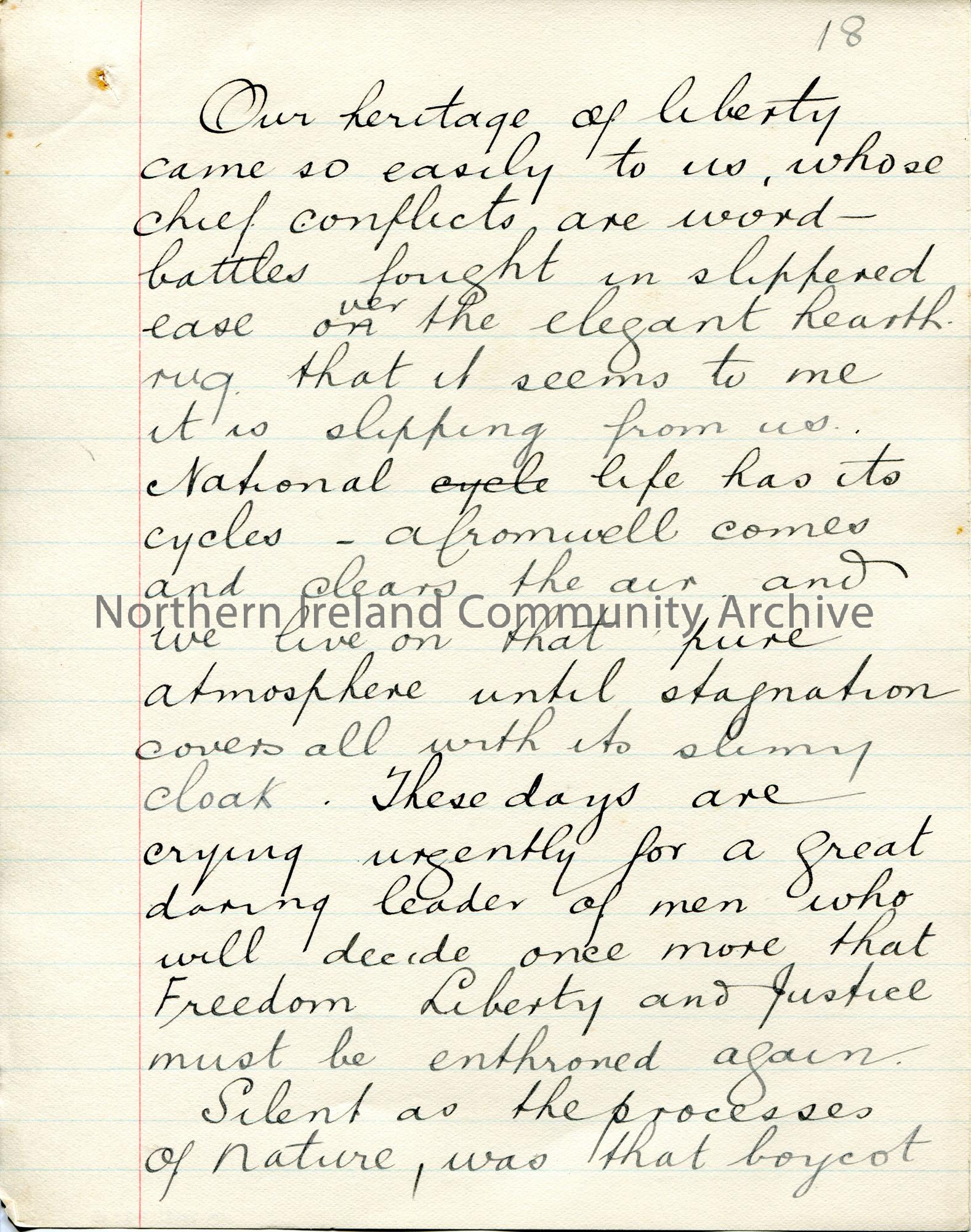 Page 18 of 71. Handwritten, rough essay [ for a talk? ] by Sam Henry titled 'Here and There in the King's Service'. Dated 1909 by JM. Sam Henry talks through his first 15 years of service as an Exciseman. He was based at Falcarragh, Ballymote in Co. Sligo, Lancashire, Uffculme and Omagh in Co. Tyrone.