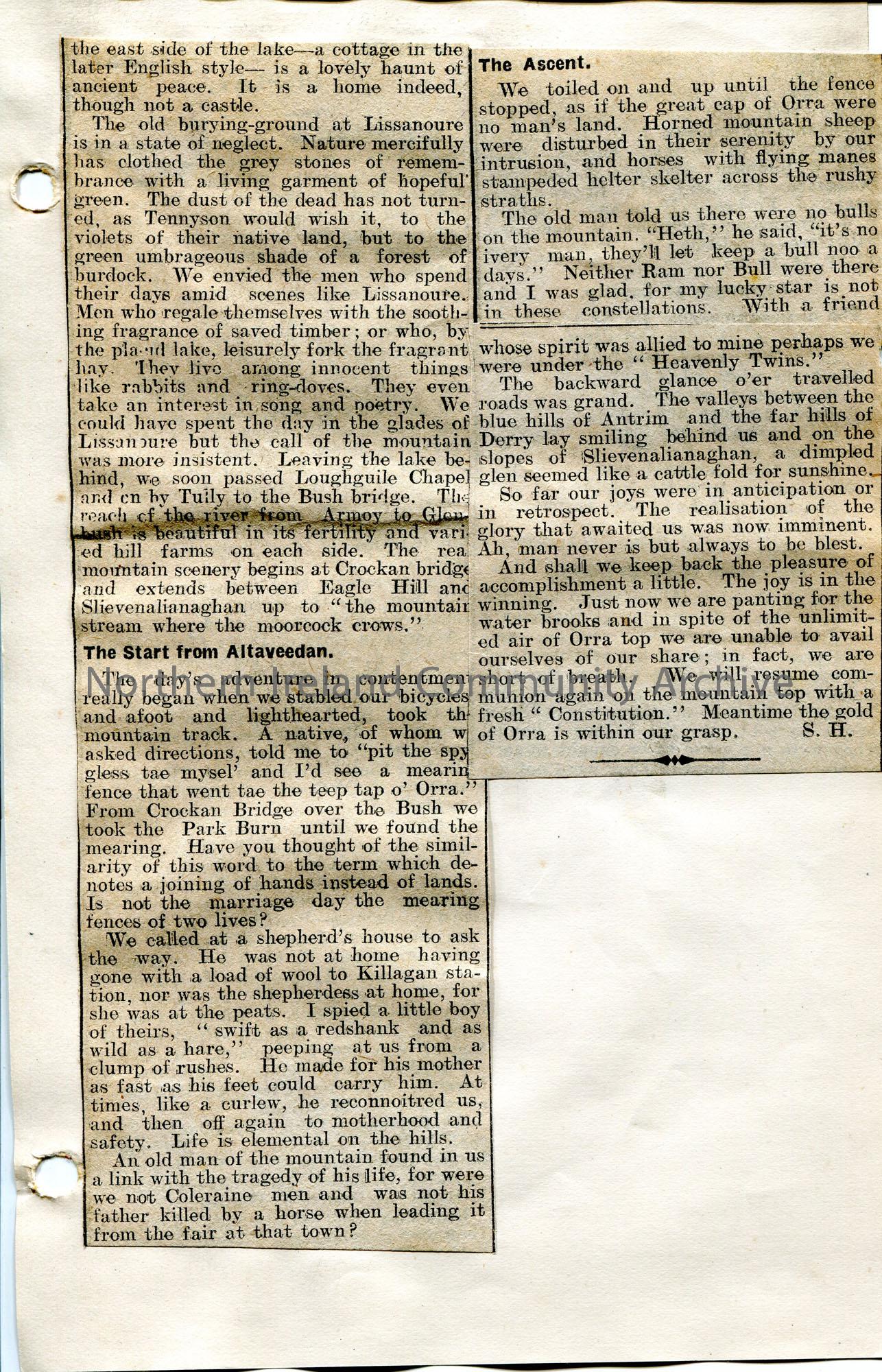 Page 2 of 2. Article cut from newspaper and pasted to page. Titled, ‘Eastward Ho! Towards the Hill of Gold’ by Sam Henry.
