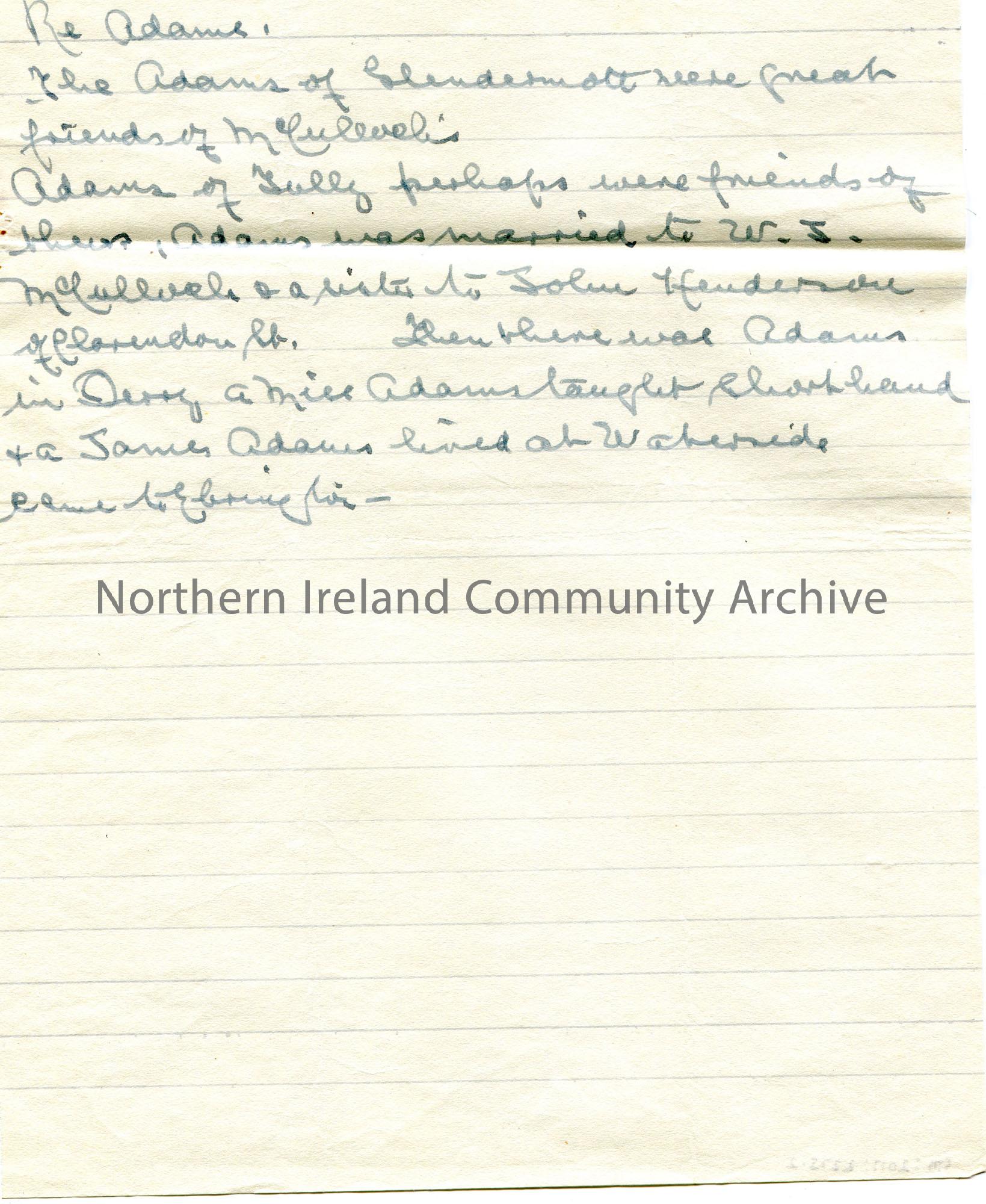 Page 2 of 2. Handwritten genealogical notes on lined paper re Robert and William MacCulloch and the family name Adams.
