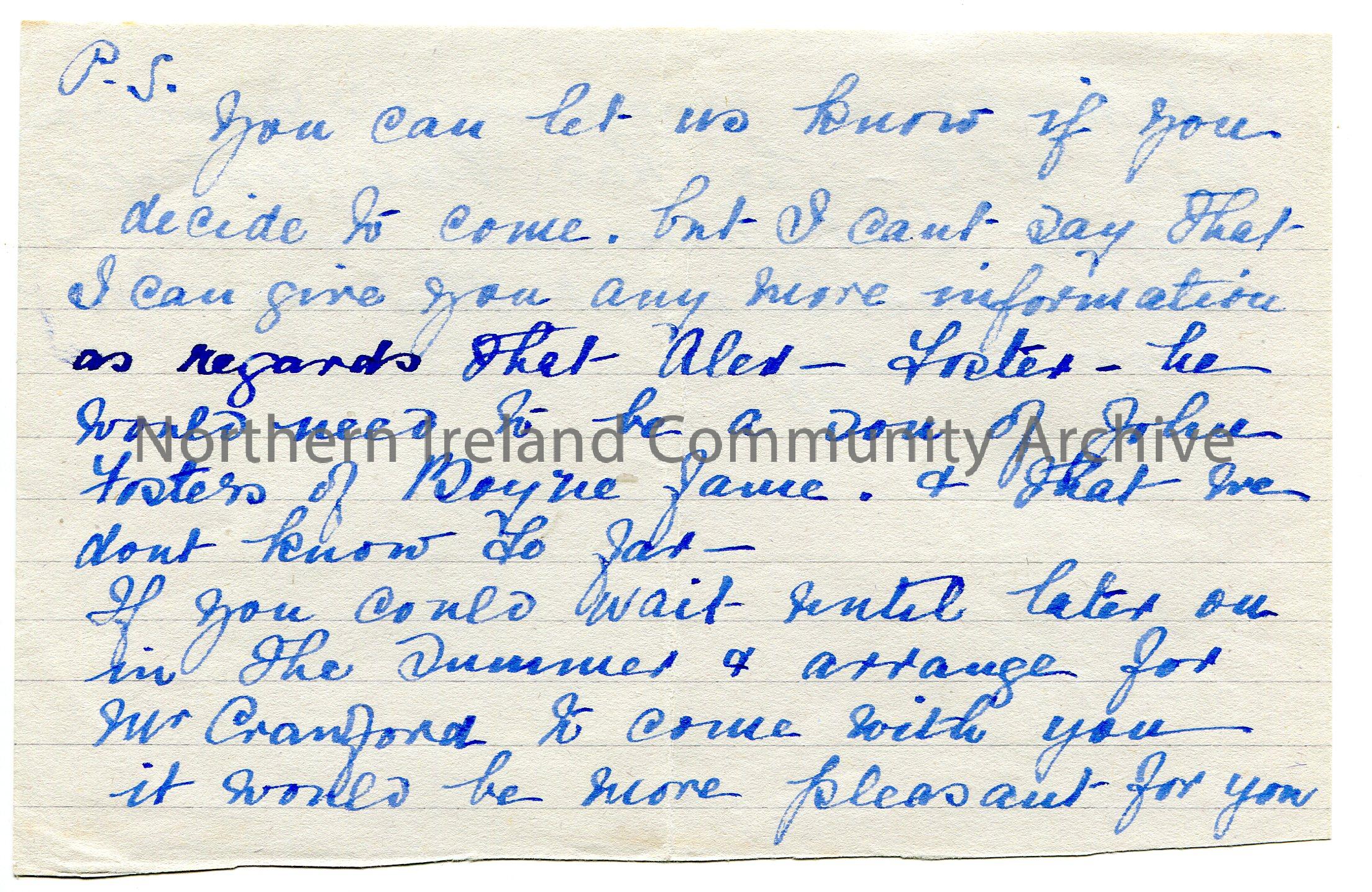 Page 2 of 2. Handwritten letter (double sided, blue ink and lined blue paper) to Mr Henry. Writing re Sam’s query re members of the Foster family.