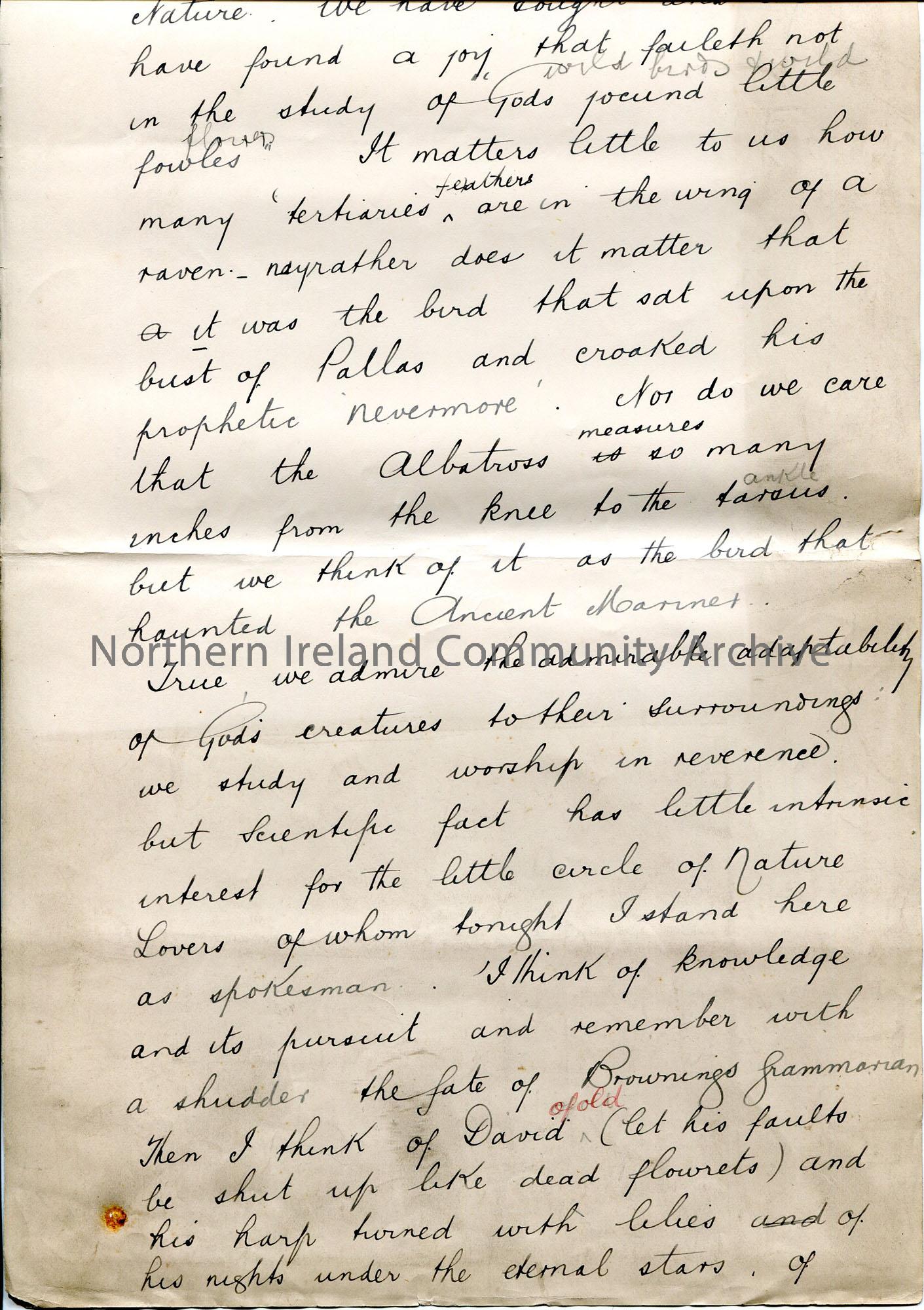 Page 2 of 2. Handwritten page of a lecture or essay titled, ‘A Seachange’. Re nature. – scan001c