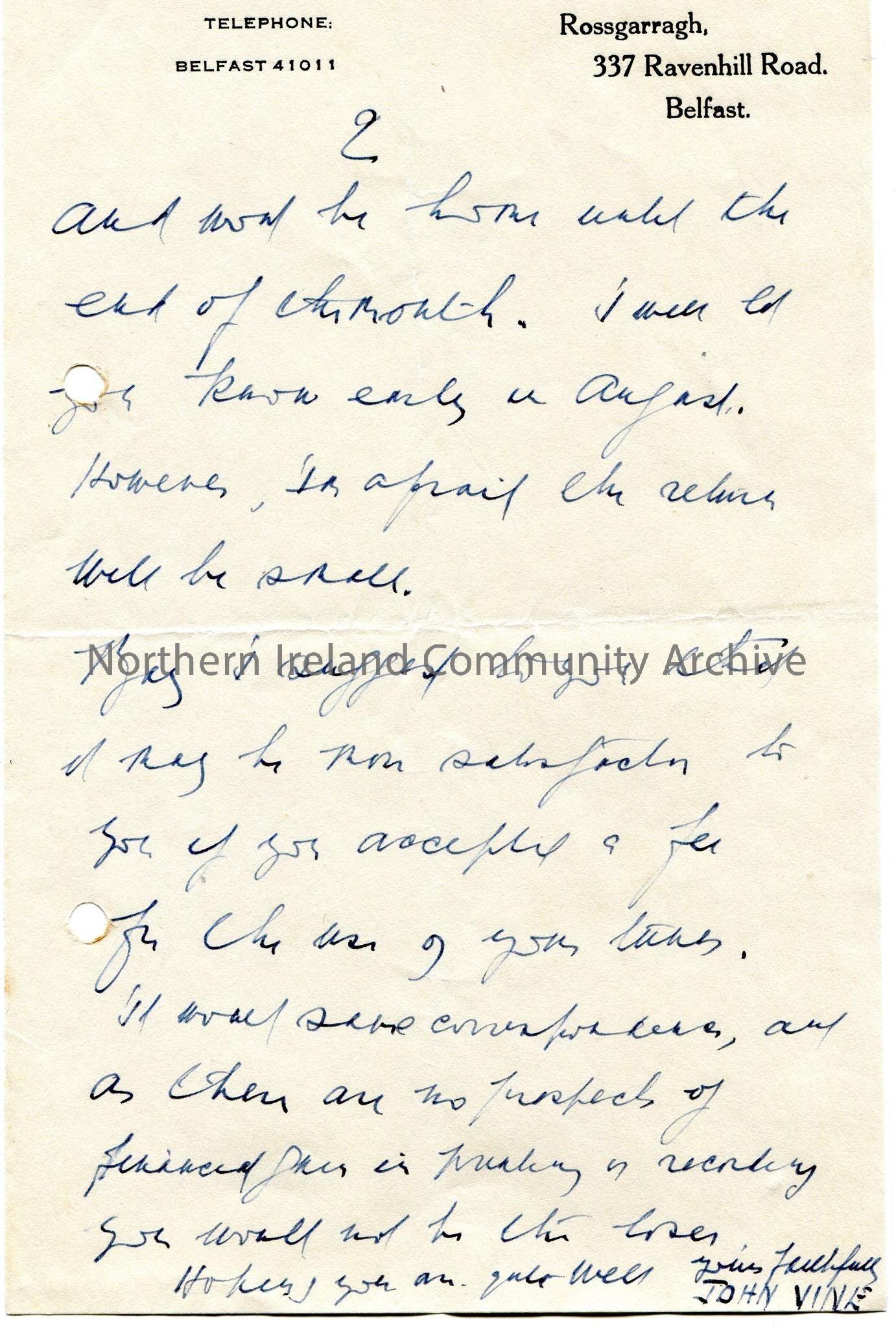 Page 1 of 2 of handwritten letter (double sided...