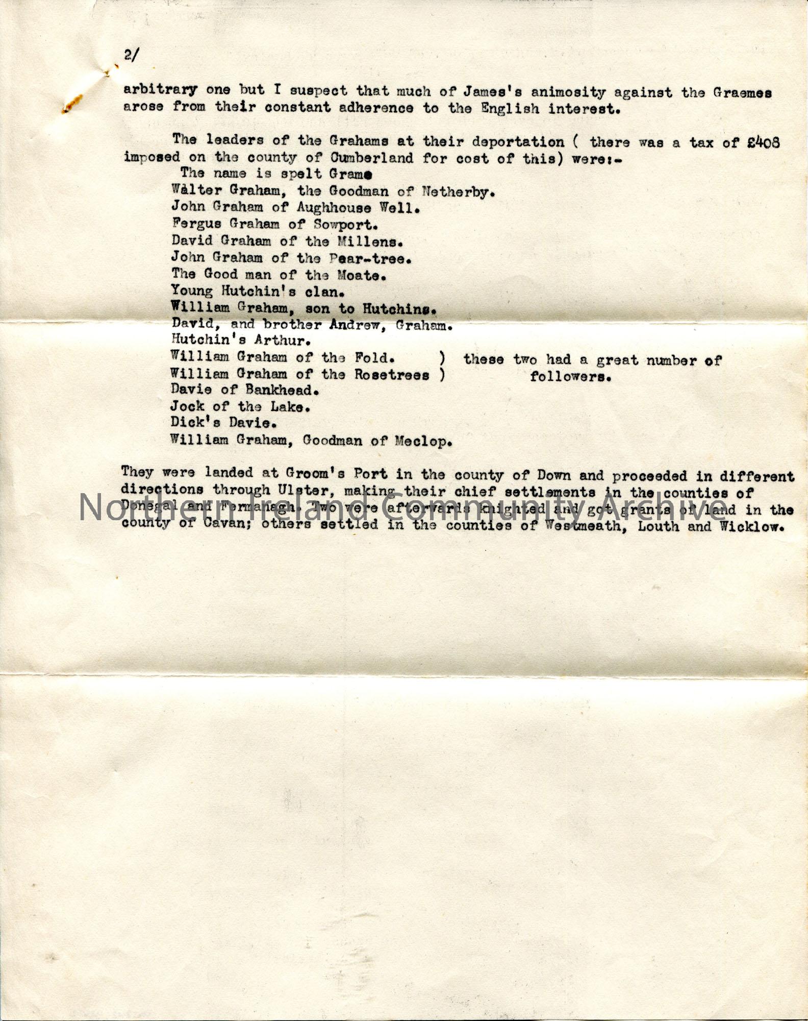 Page 2 of 2. Typed extracts from "Ireland Preserved" by Rev. John Graham, M. A. Rector of Tamlaghtard 1841.