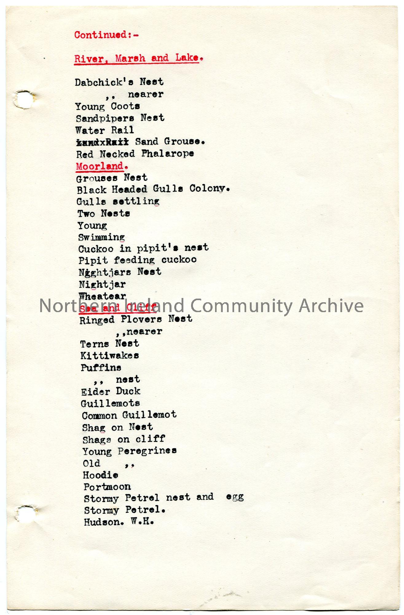 Page 2 of 2. Typed list of slides for lecture ‘Rambles in Birdland’ at Coleraine Academical Institution on 7th October 1927.
