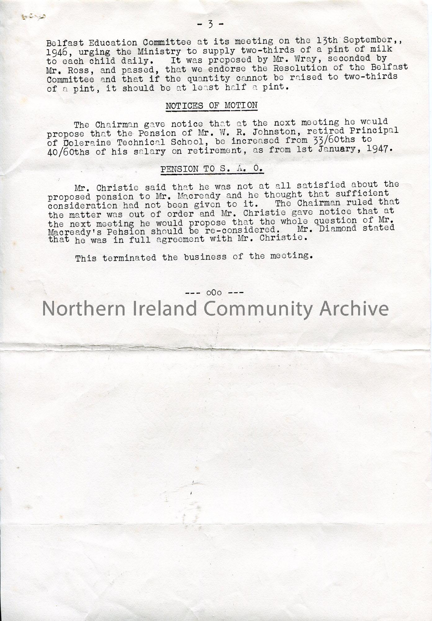 Page 2 of 2. Typed minutes of a meeting of Coleraine Regional Education Committee in Coleraine Town Hall on 5th October 1946 at 1.15pm.