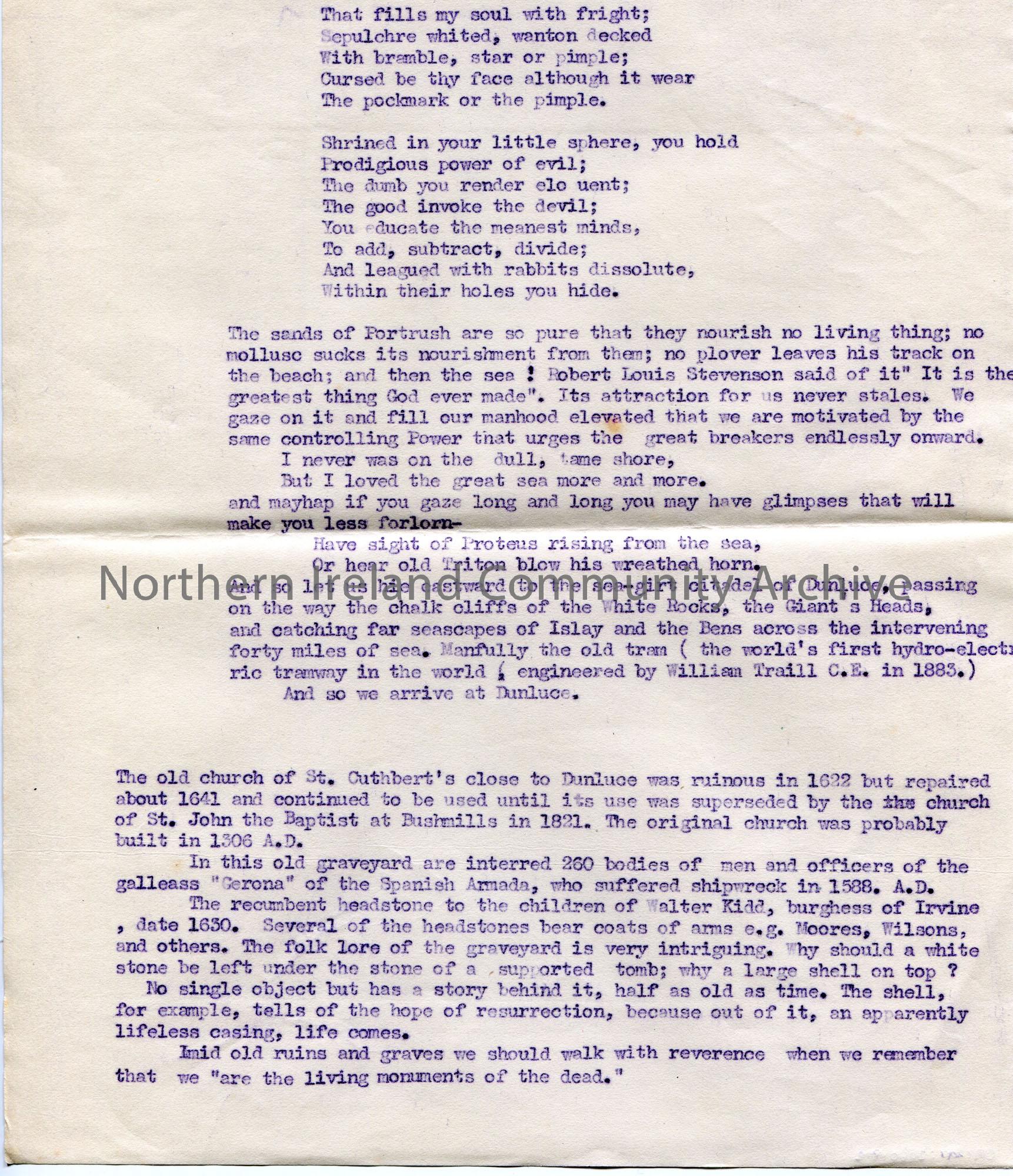 Page 2 of 2. Typed notes for draft of the foreword of Sam Henry’s book ‘Dunluce and Giant’s Causeway’. Titled, ‘Foreword’. It is titled as ‘Introducto…