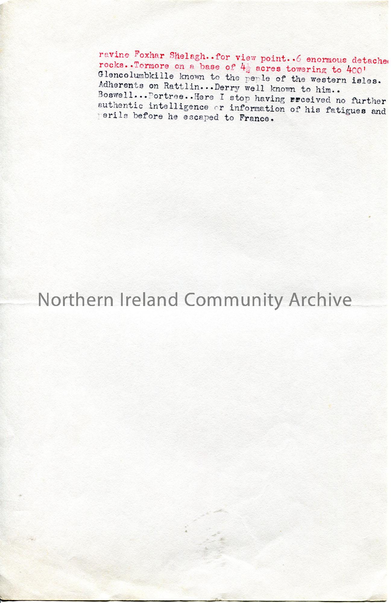 Page 2 of 2. Typed notes re Prince Charlie. Titled, ‘Bishop MacGinley’s MSS’.