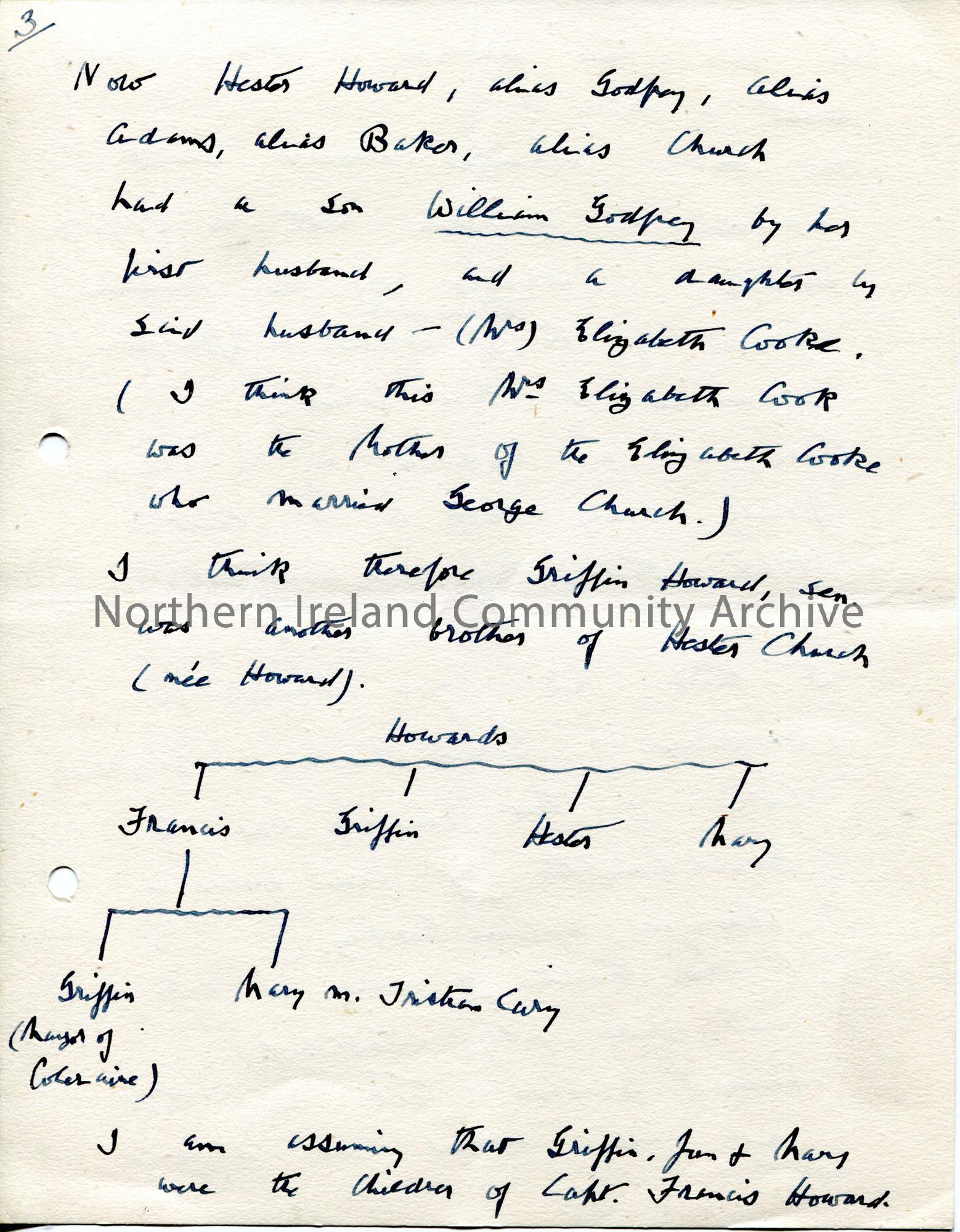 Page 2 of 3. Handwritten letter (page double sided) to Sam Henry from Wilfrid Abbott. Asks Sam if he has any information on the Howards of Coleraine. Provides details of Howard and Church family names.