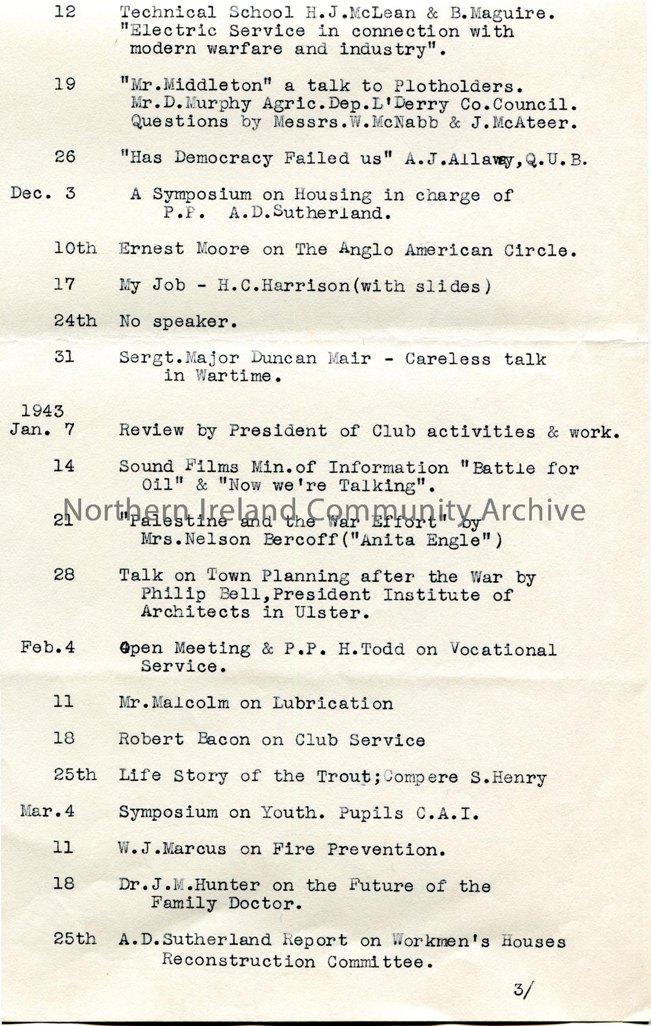 Page 2 of 3 titled ‘Coleraine Rotary Club, Luncheon Programmes From 9th April, 1942 to 27th May 1943. On reverse of last page is a form re public opin… – img214b