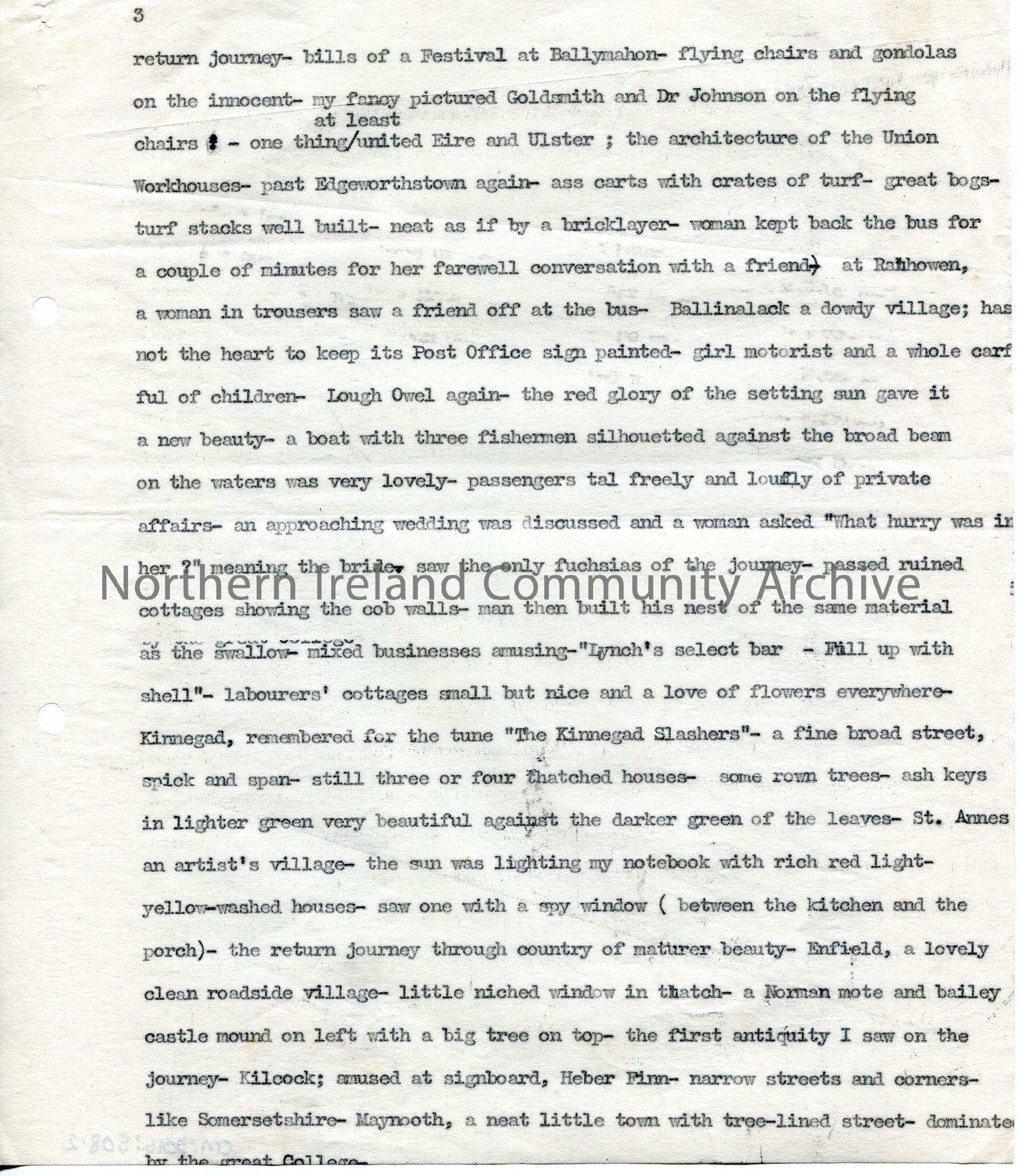 Page 2 of 3. Typed document re bus journey through Ireland. “Article accepted or pending” written in pencil on back of last page.