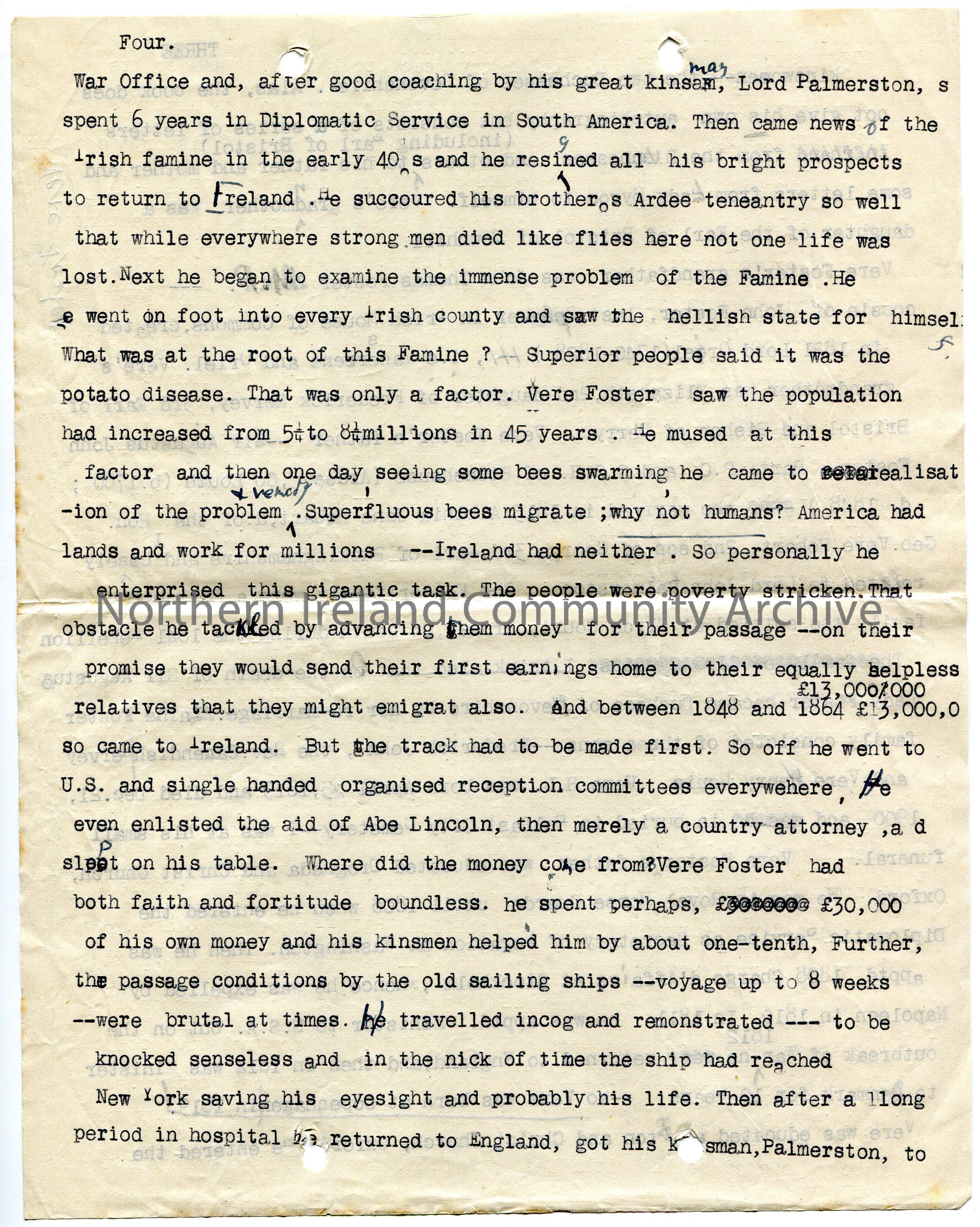 Page 2 of 3. Typed letter (double sided) to Sam Henry. Writing re Sam’s request for information re Vere Foster. The writer is unsure whether to do a t… – scan019d
