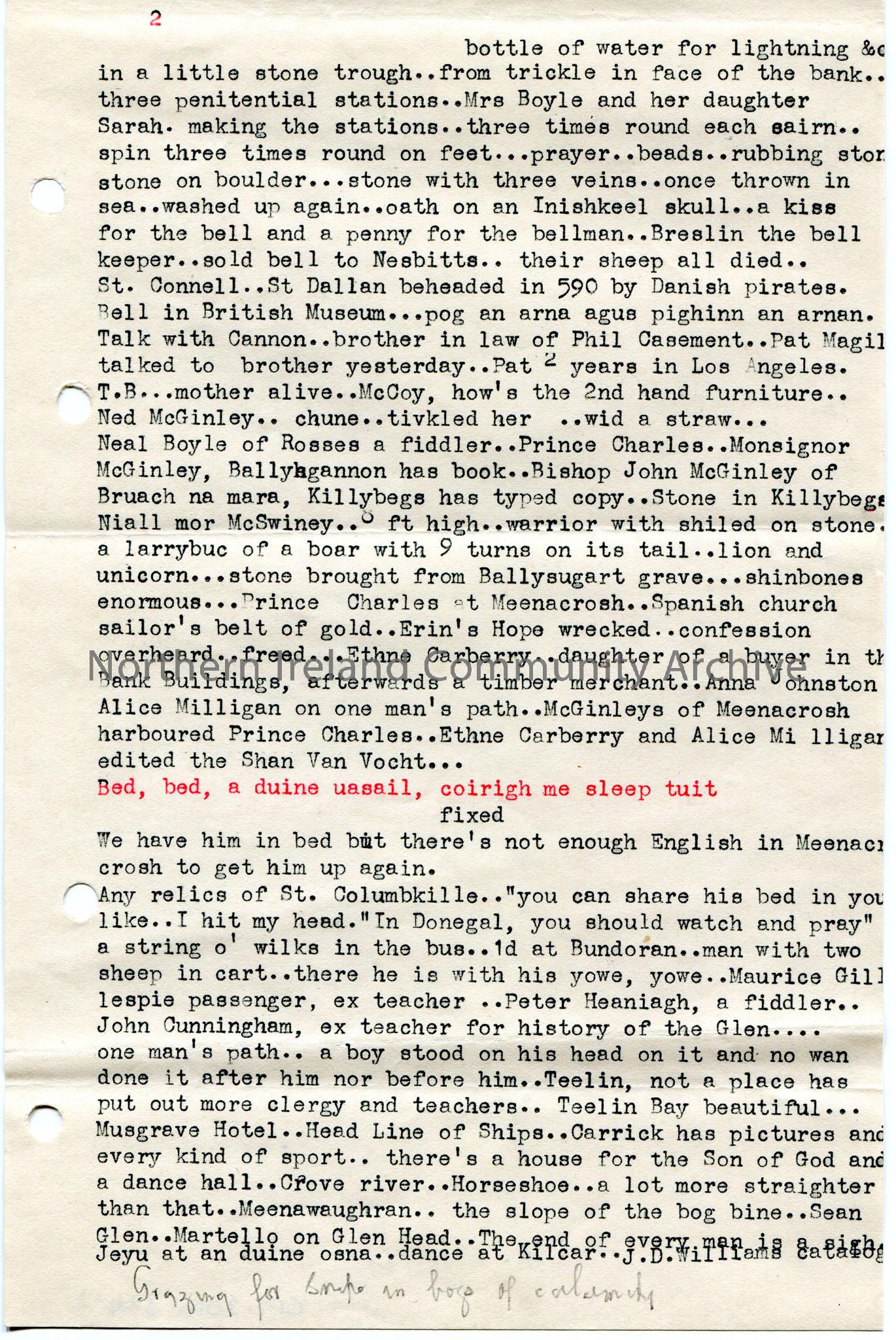 Page 2 of 3. Types notes re At Portnoo. 12th July 1933 and St. Niall's well.
