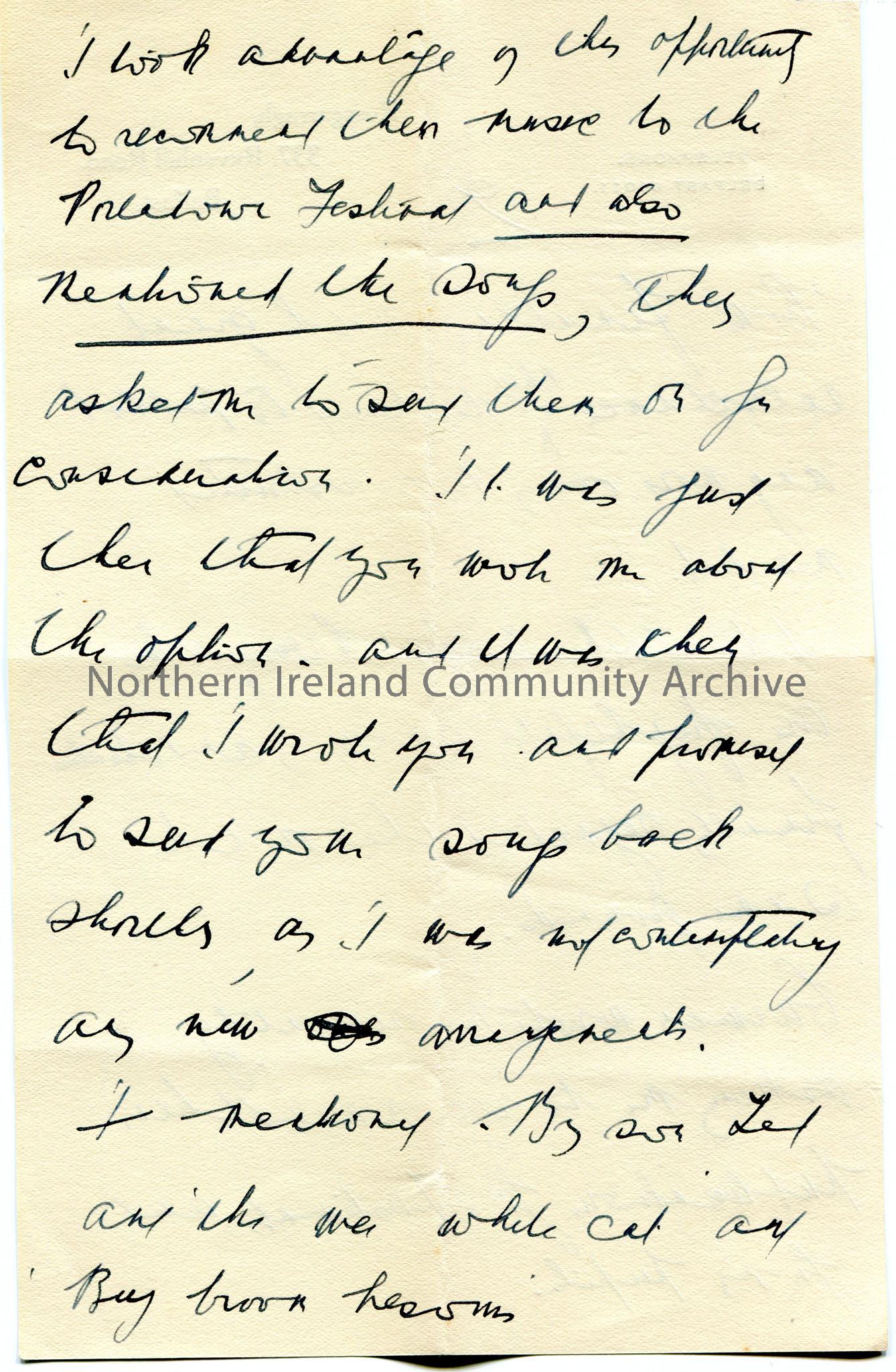 Page 2 of 5. Handwritten letter to Mr Henry. Appears to be contacting publishers re music arrangements of songs given by Sam. Recalls [Maurice] Jacobson having seen Sam in Coleraine re 'The White Cat'.