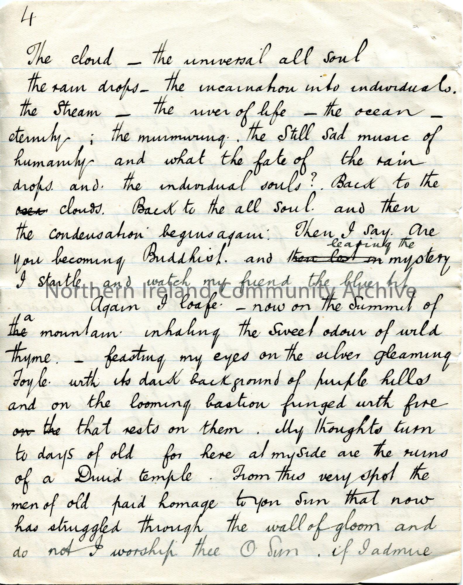 Page 2 of 6. Handwritten essay by Sam Henry titled, ‘An Idle Springtime’. Re nature and walking amongst it. Refer to this as the ‘art of loafing’. Men… – scan026d