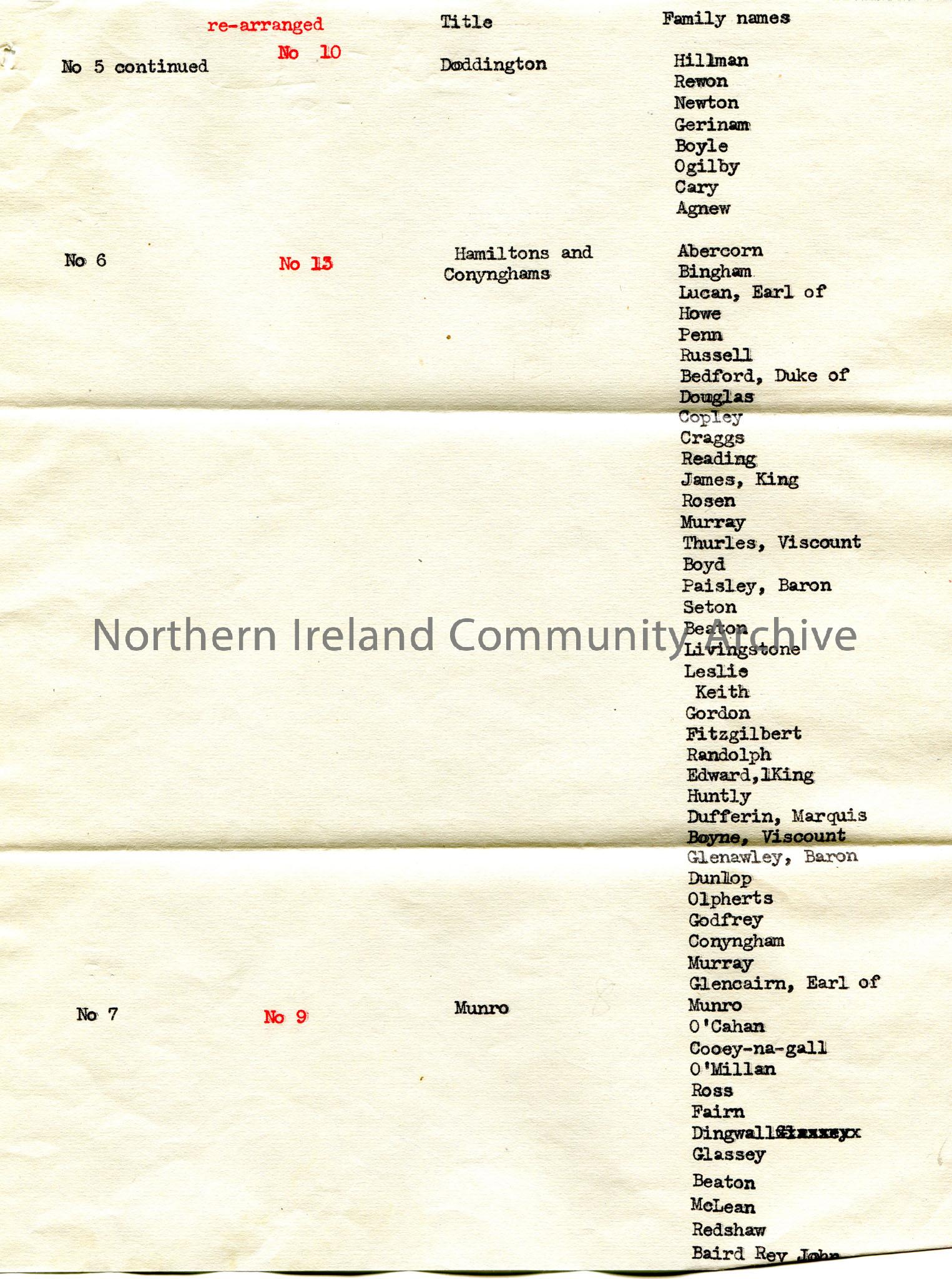 Page 2 of 6 pages of typed document. Numbered list of articles/chapters and family names.
