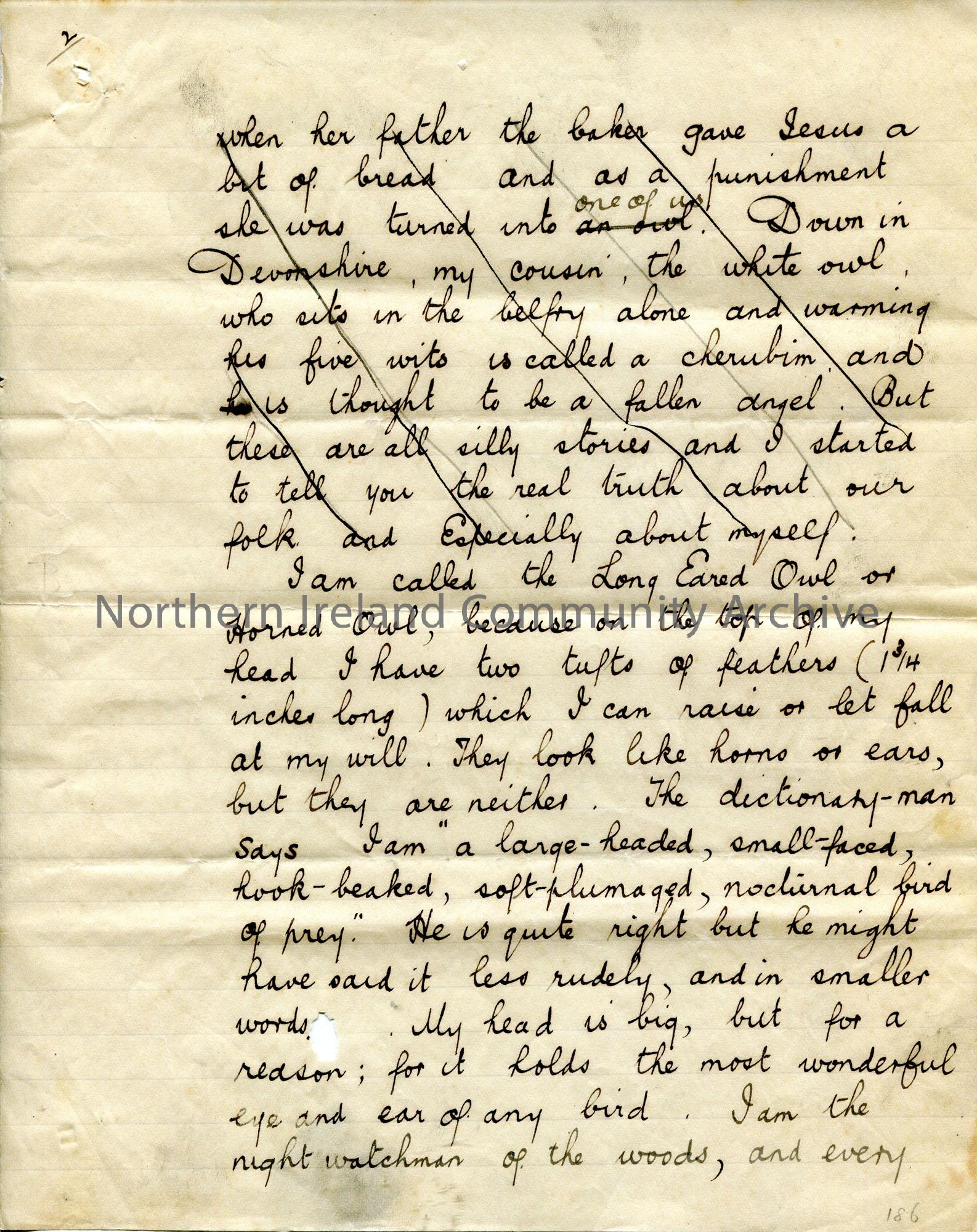 Page 2 of 7. Handwritten version of a draft article 'Letters from Bird Friends' for 'Daybreak' publication series. Written by Sam Henry from the perspective of an owl.