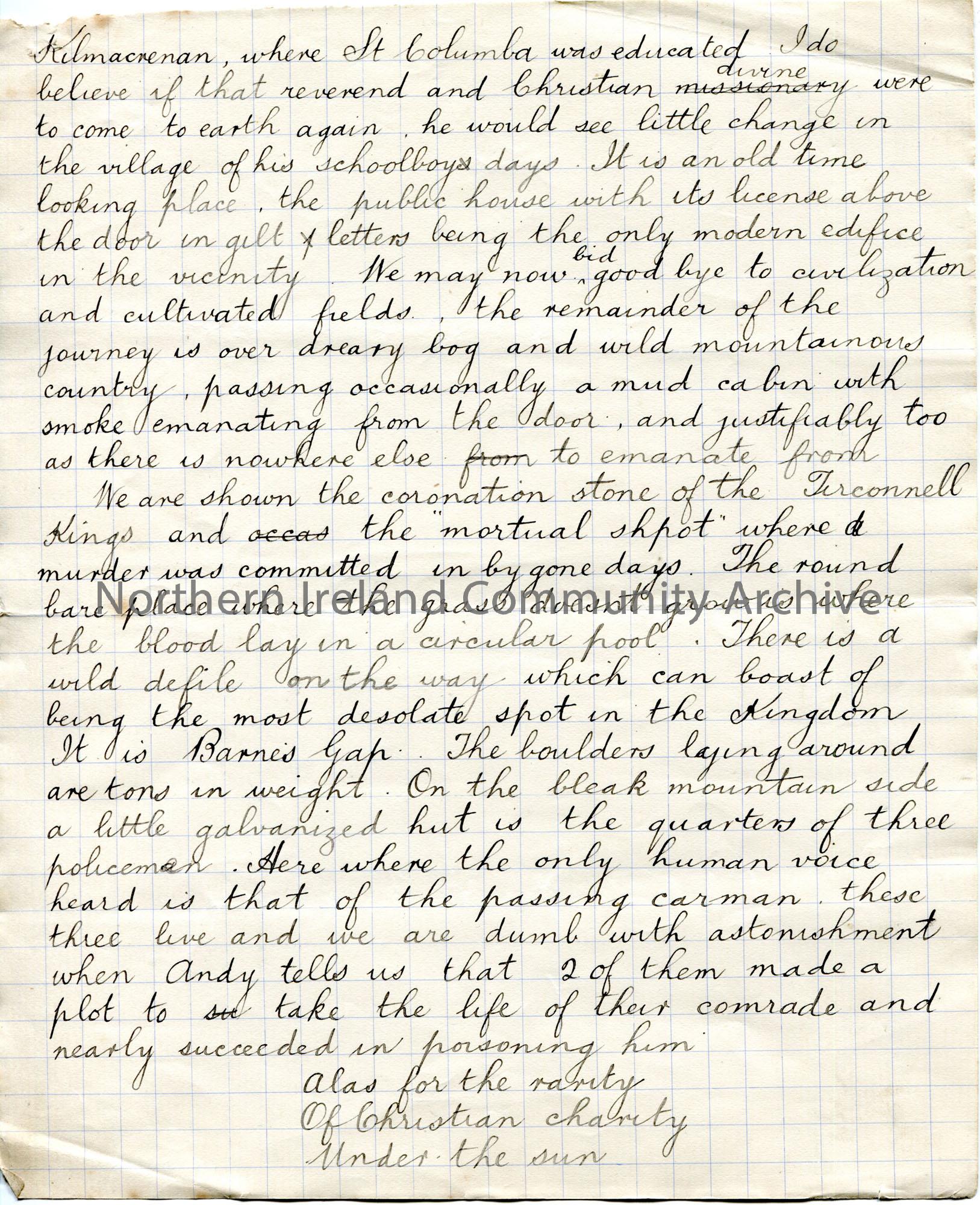 Page 2 of 8. Handwritten story titled, ‘A Holiday in Donegal’.