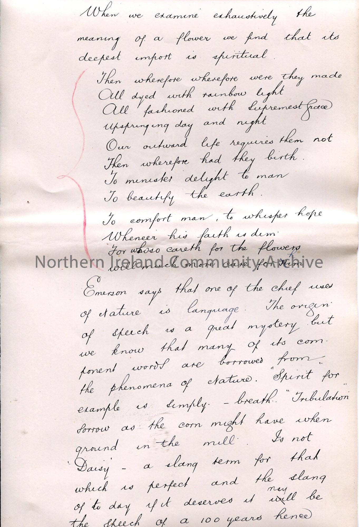 Page 20 of 33. Handwritten essay by Sam Henry titled, ‘The Daisy’. Re the flower. Pages not in order.