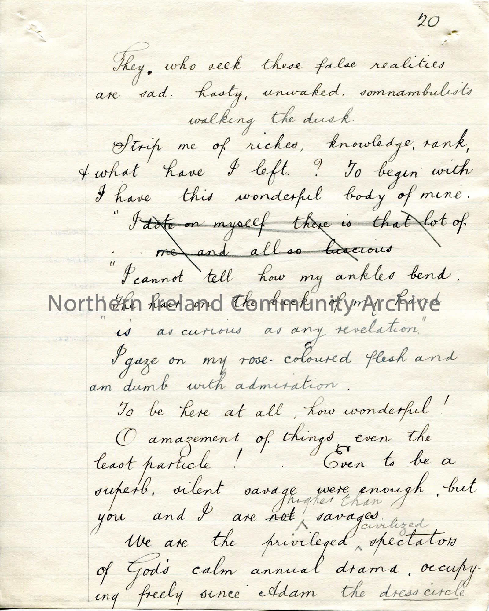 Page 20 of 43. Handwritten essay by Sam Henry titled, ‘Walt Whitman. The Bard of Personality’. Short biography of Whitman and discussion of his poetry…