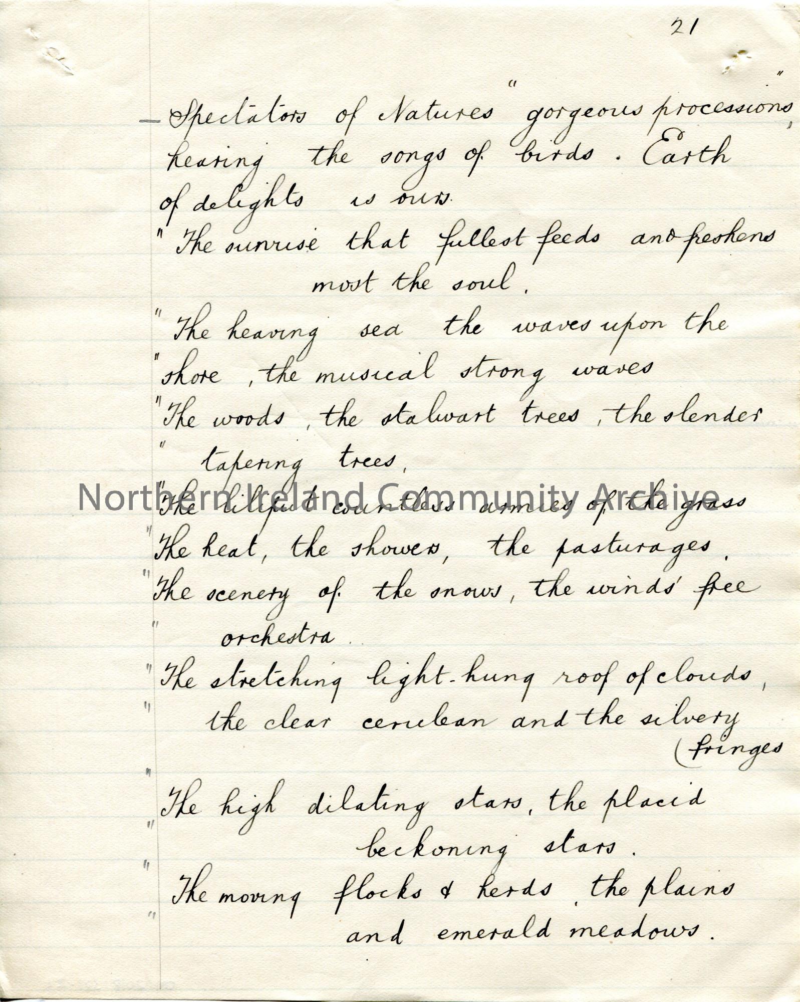 Page 21 of 43. Handwritten essay by Sam Henry titled, ‘Walt Whitman. The Bard of Personality’. Short biography of Whitman and discussion of his poetry…