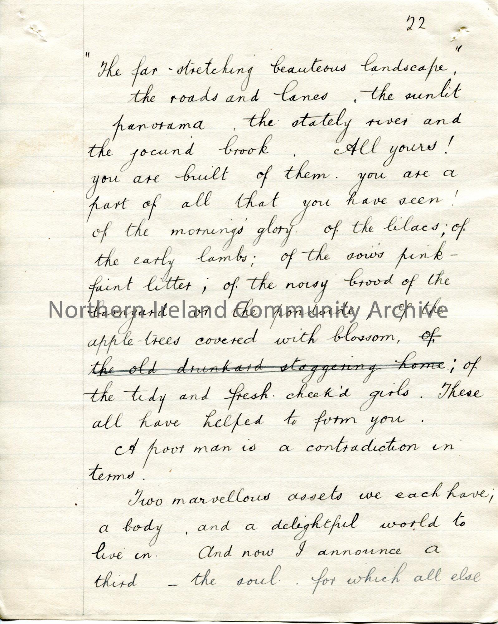 Page 22 of 43. Handwritten essay by Sam Henry titled, ‘Walt Whitman. The Bard of Personality’. Short biography of Whitman and discussion of his poetry…