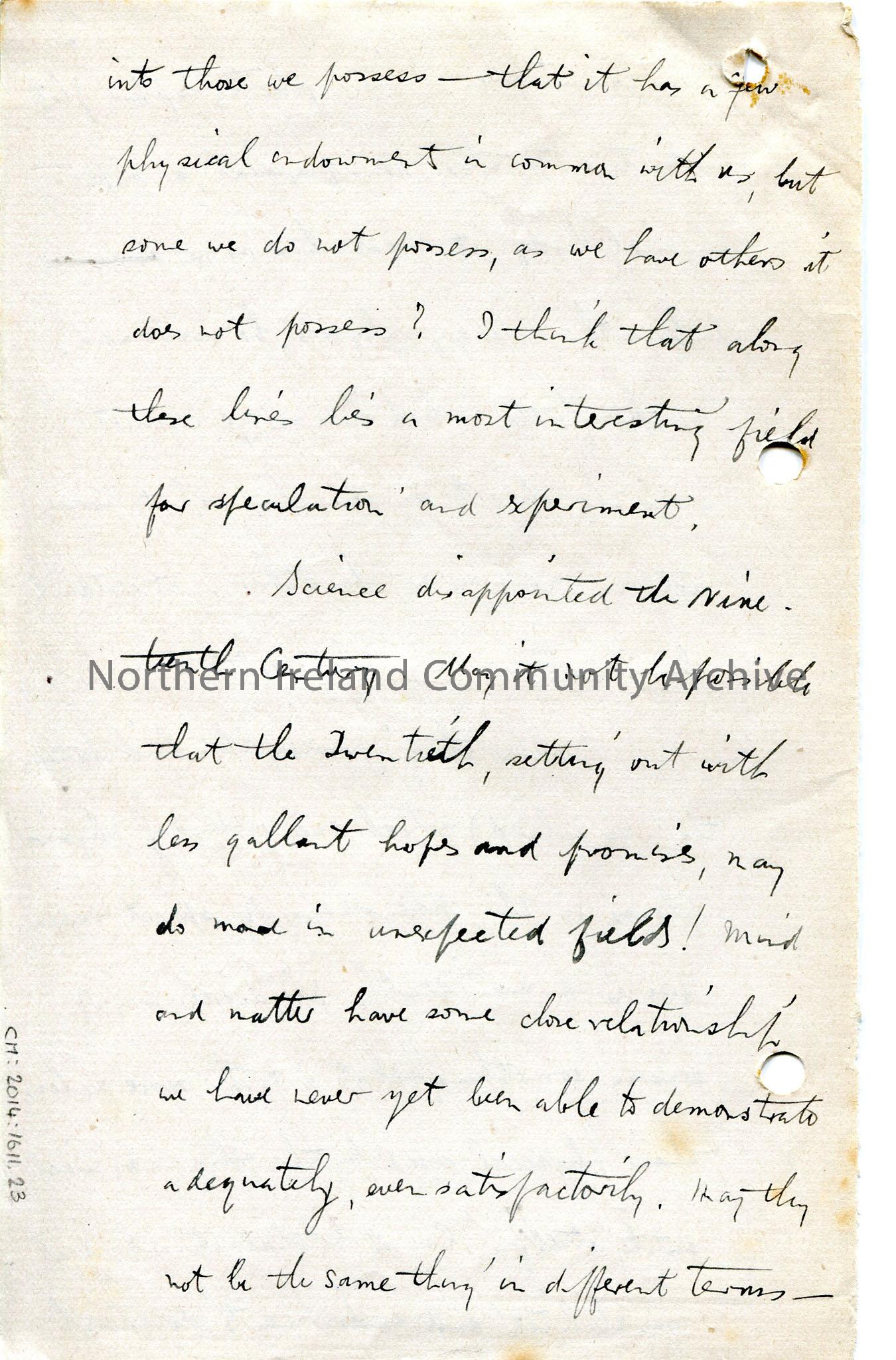 Page 23 of 24 page handwritten letter, on both sides of paper – author appears to have left Coleraine and now live in Glasgow. Mentions Irish Society … – img068b