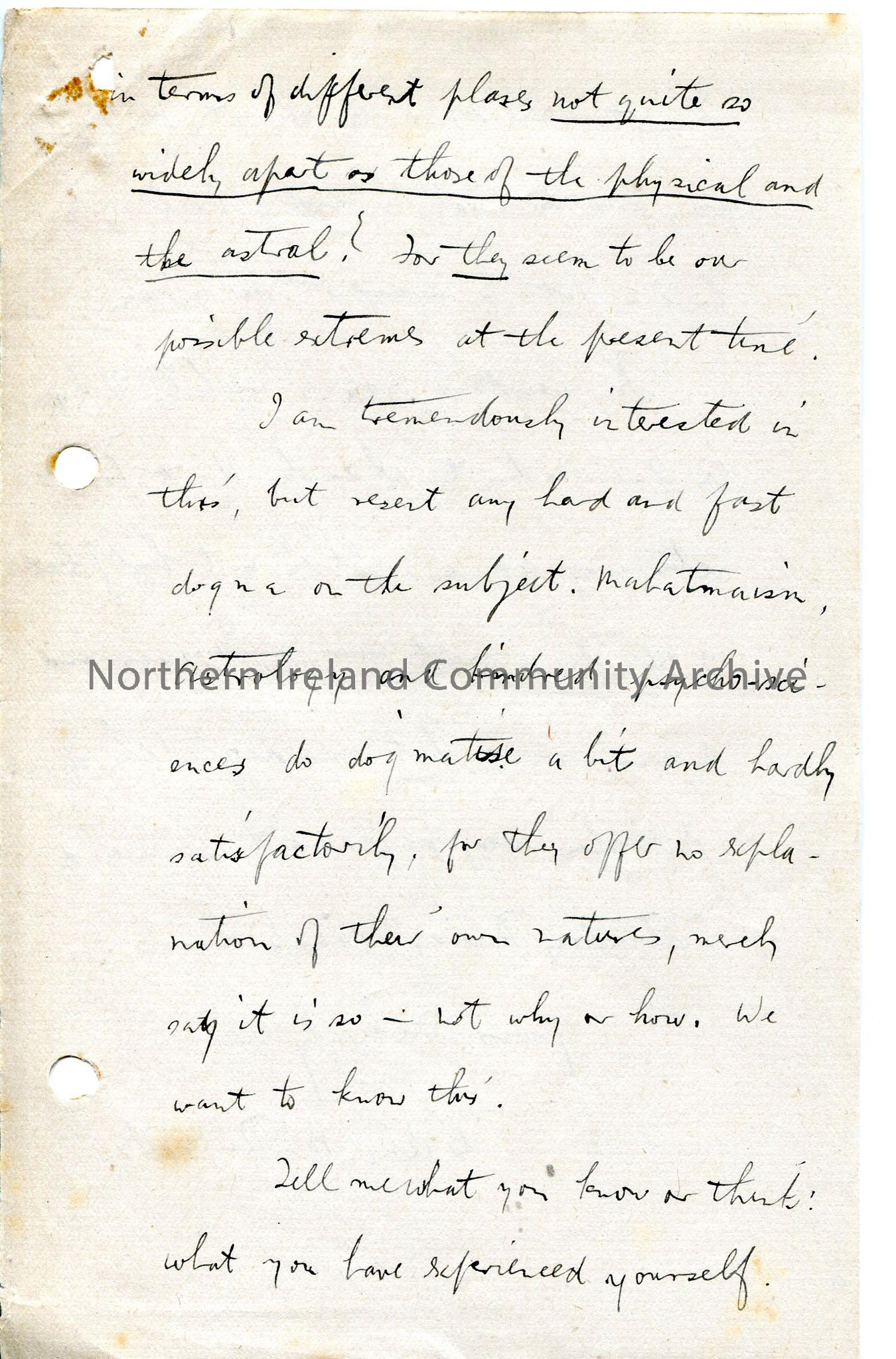 Page 24 of 24 page handwritten letter, on both sides of paper – author appears to have left Coleraine and now live in Glasgow. Mentions Irish Society …