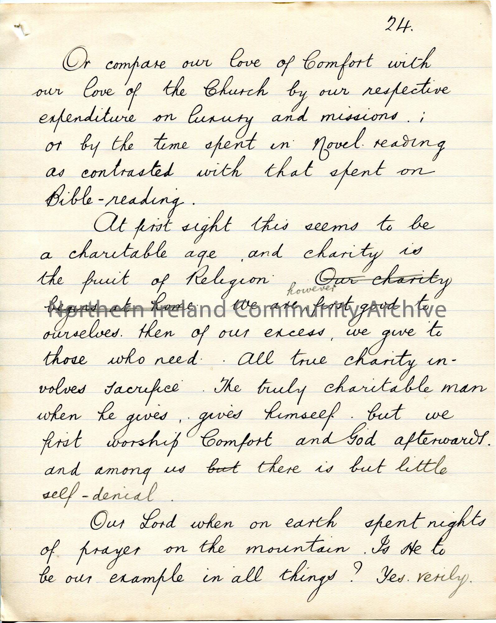 Page 25 of 39. Handwritten essay by Sam Henry titled, ‘The Cult of Comfort’. Title is scored out. Dated Omagh, December 1905. Religious, philosophical…