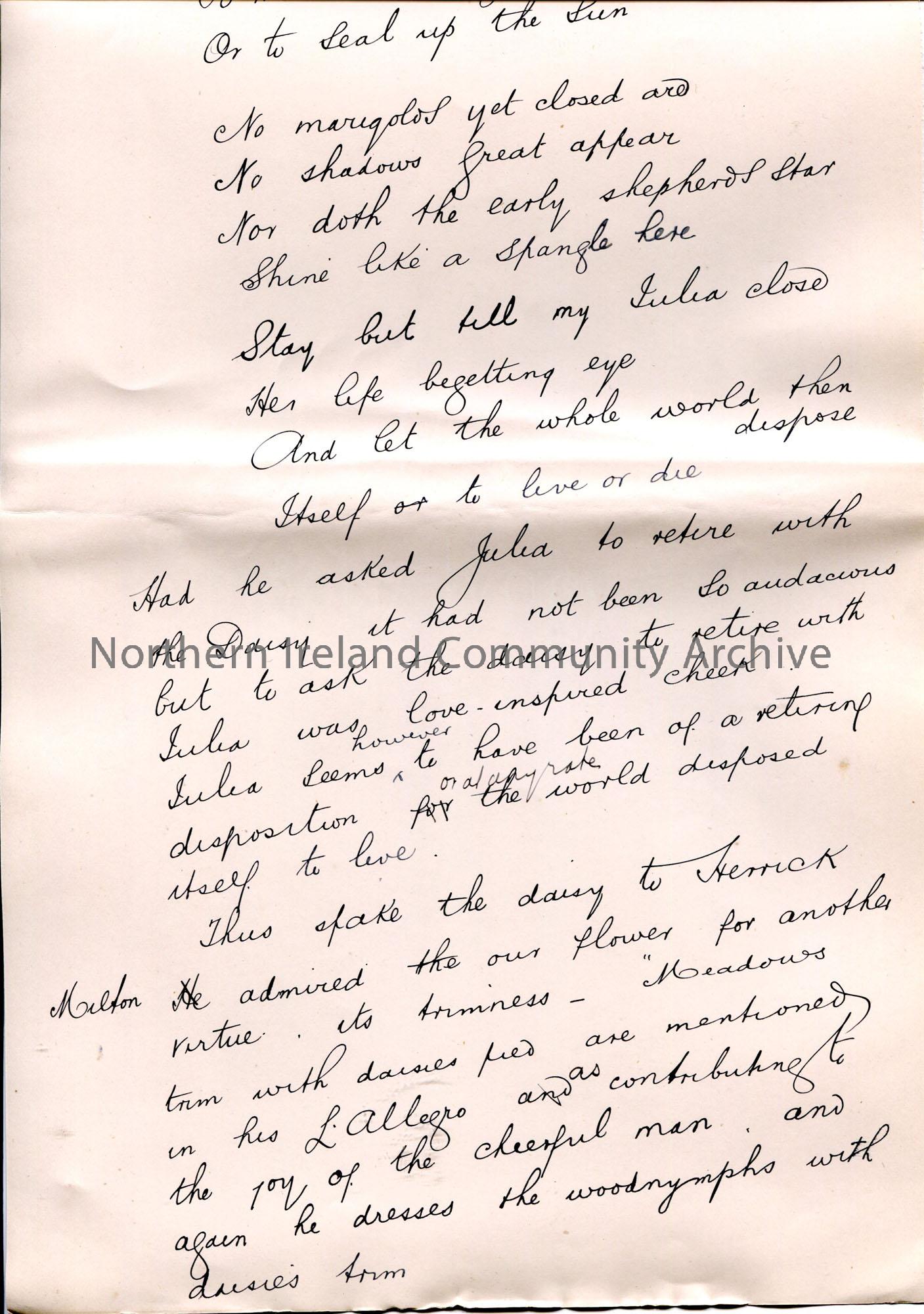 Page 26 of 33. Handwritten essay by Sam Henry titled, ‘The Daisy’. Re the flower. Pages not in order. – scan052b