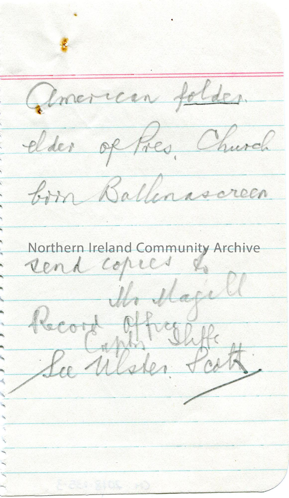 Page 3 of 14. Handwritten notes in pencil on lined paper taken from a notebook re General Daniel Morgan, America.