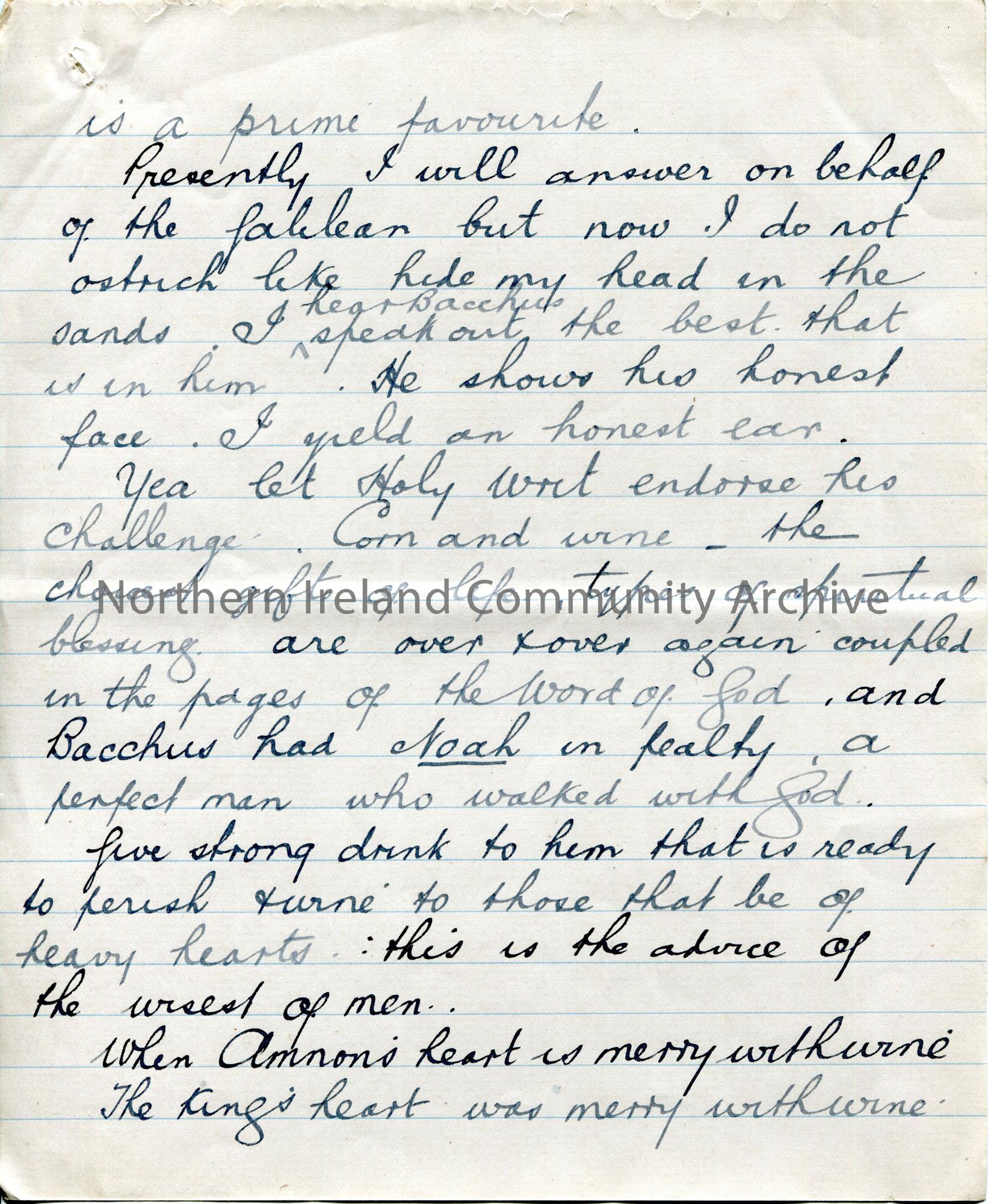 Page 3 of 15. Handwritten essay titled, ‘The Challenge of Bacchius’. Based on the poem ‘The Challenge of Thor’ by Henry Wadsworth Longfellow.