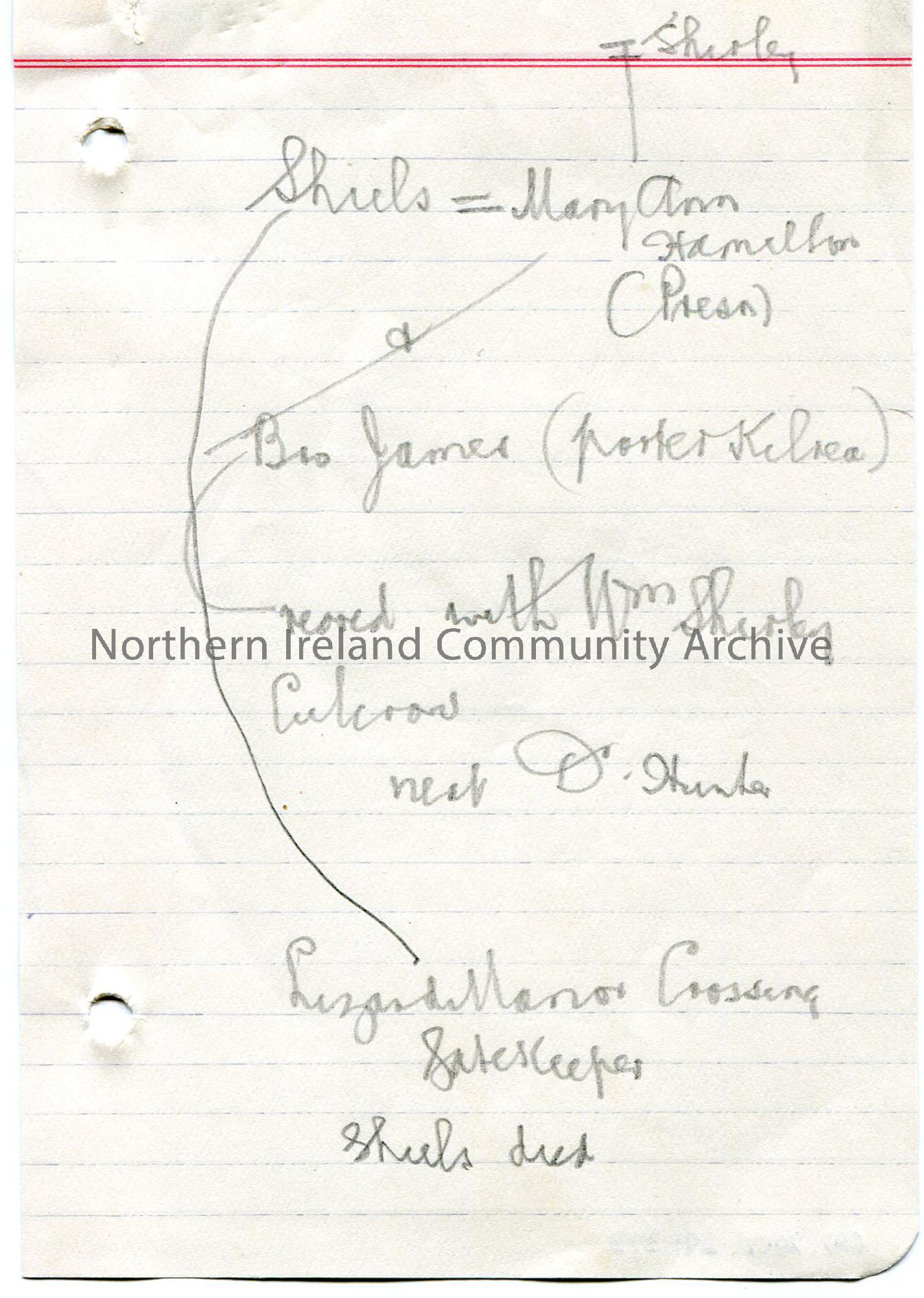 Page 3 of 15. Rough genealogical notes on lined paper in pencil from a notebook re Sam’s ‘Blair Inquiry’. Mentions Hugh Blair and John Blair. ‘Record …