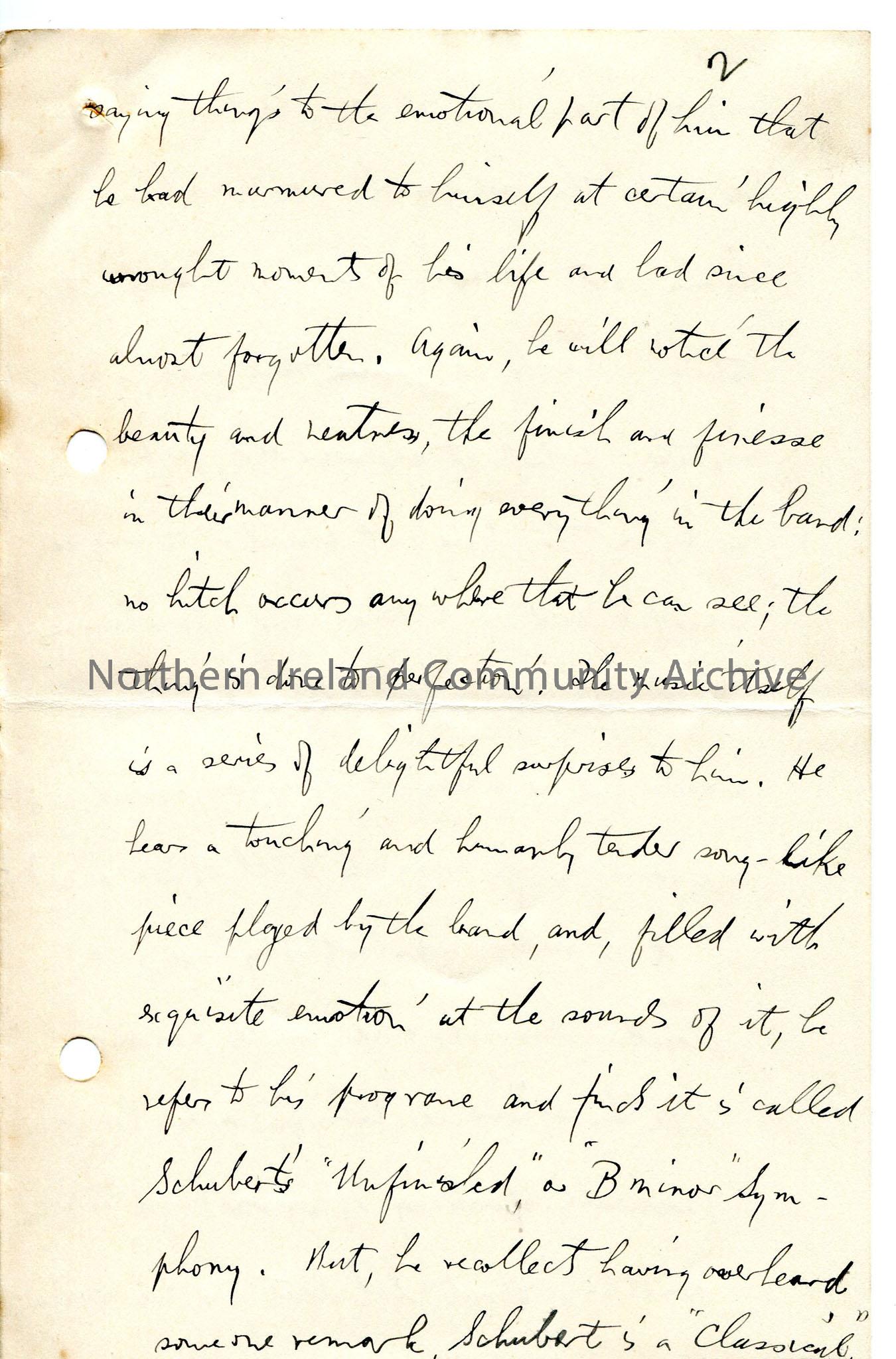 Page 3 of 24 page handwritten letter, on both sides of paper - author appears to have left Coleraine and now live in Glasgow. Mentions Irish Society School. Writes about classical music, Ibsen plays, a fanciful sketch his own, and Irish theatre, writers and myths and legends.