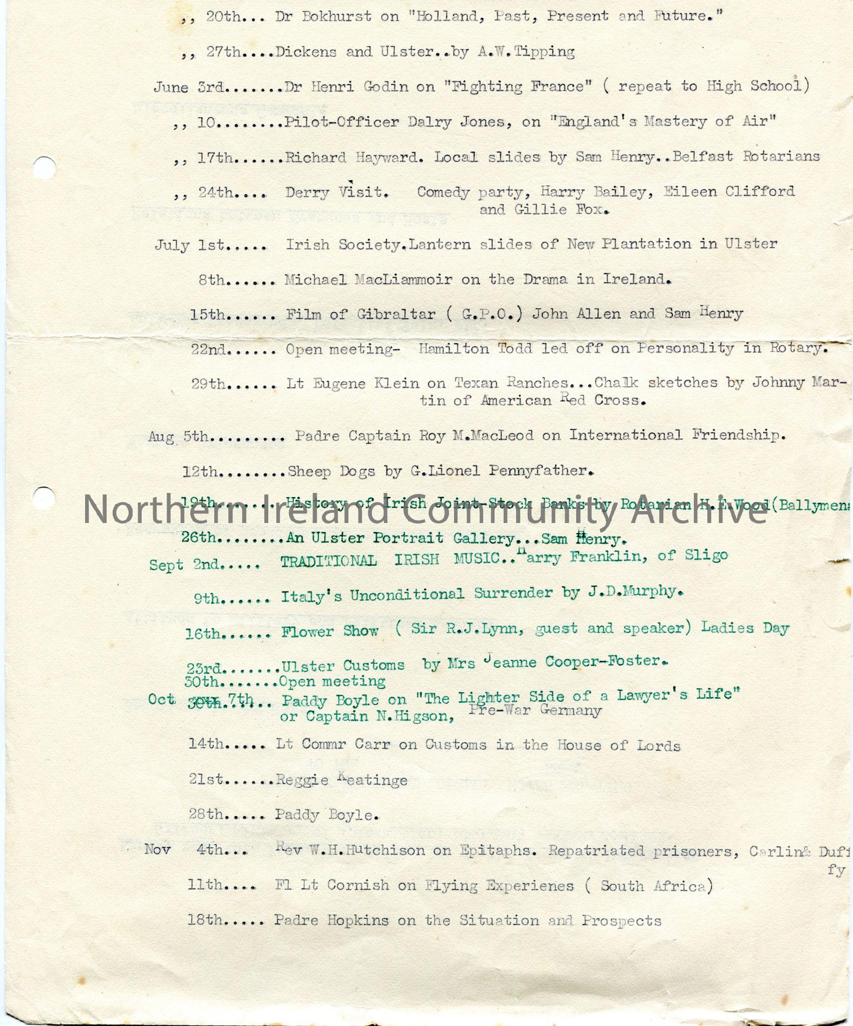 Page 3 of 3 titled ‘Coleraine Rotary Club, Luncheon Programmes From 9th April, 1942 to 27th May 1943. On reverse of last page is a form re public opin… – img215b