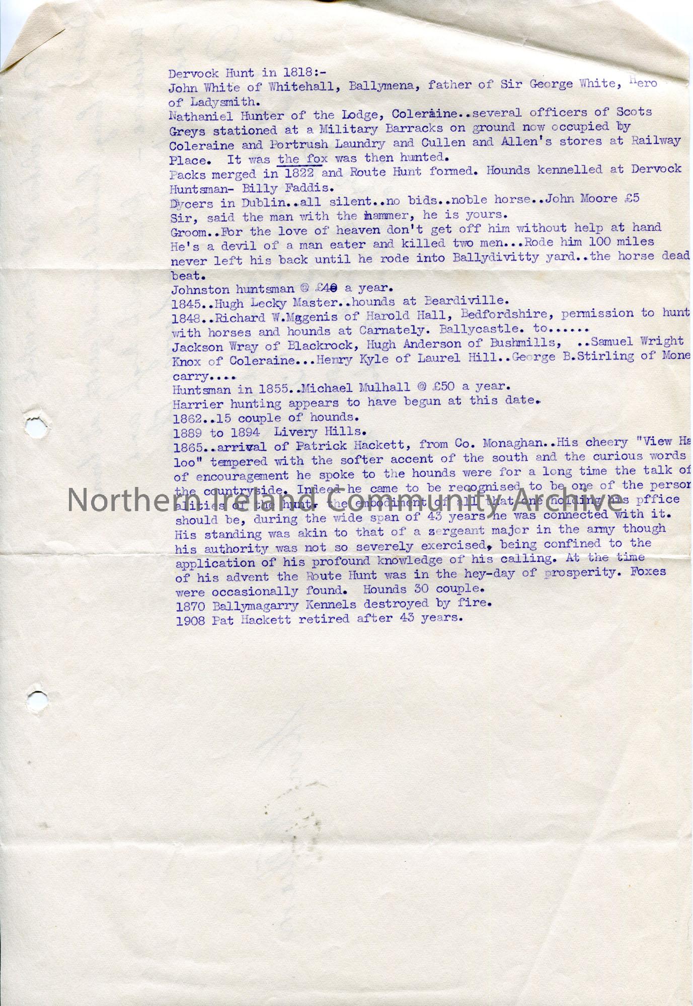 Page 3 of 3. Typed notes re Route Hunt Club. Ha...