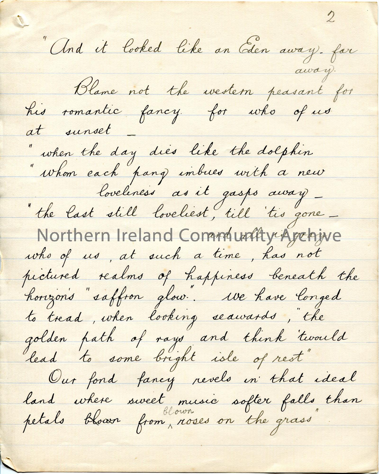 Page 3 of 39. Handwritten essay by Sam Henry titled, ‘The Cult of Comfort’. Title is scored out. Dated Omagh, December 1905. Religious, philosophical …