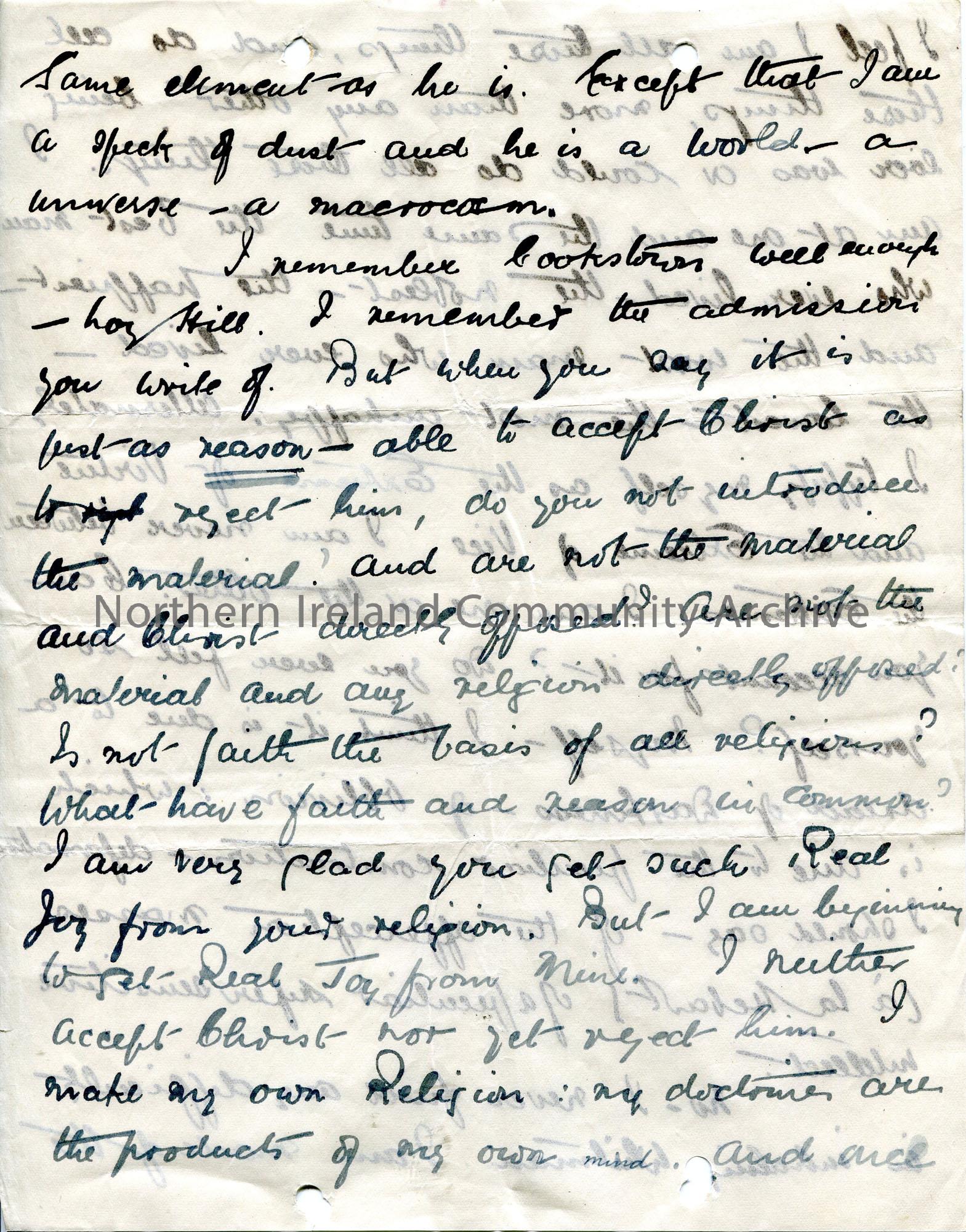 Page 3 of 4. Handwritten letter to Sam Henry. The author comes across as eccentric in their writing. Appear to work for Customs and Excise. Refers to Christianity and Sam's travels in America.