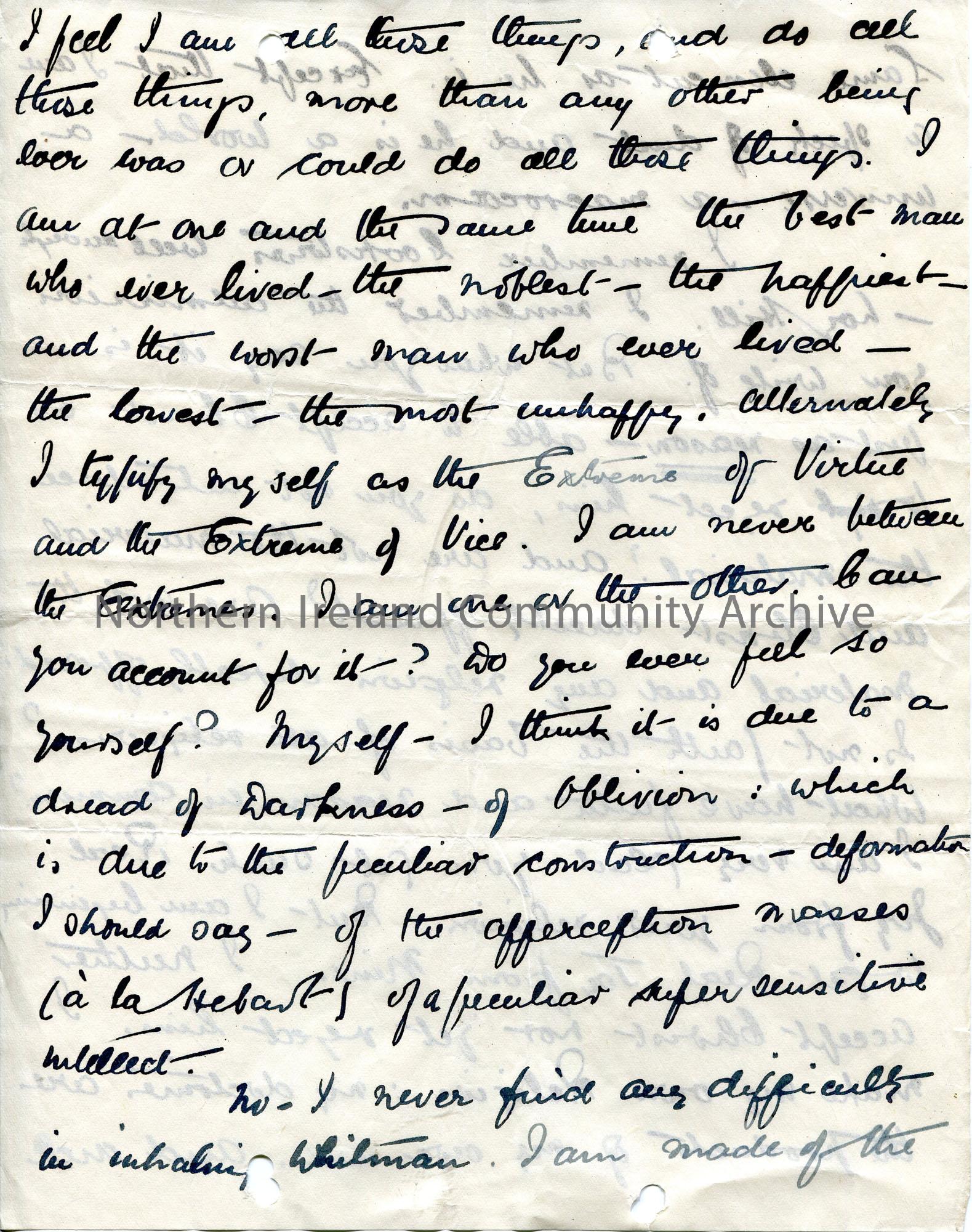 Page 3 of 4. Handwritten letter to Sam Henry. The author comes across as eccentric in their writing. Appear to work for Customs and Excise. Refers to Christianity and Sam's travels in America.